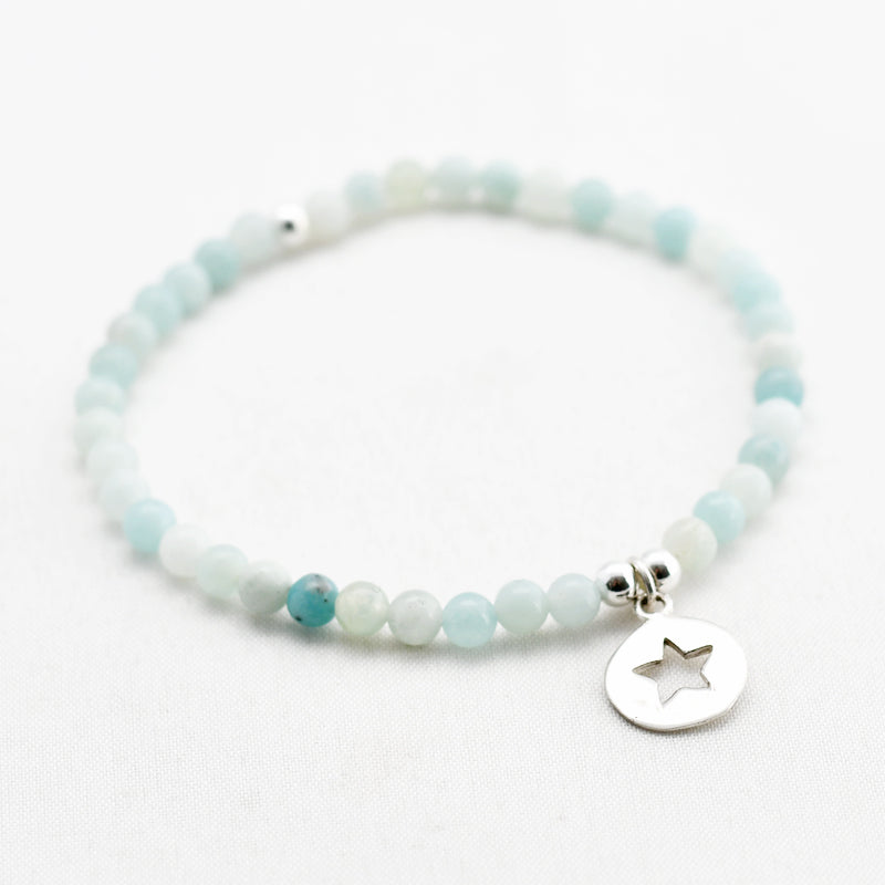 Zilver & Zoet armbandje van edelsteen amazoniet (4 mm) met een 925 sterling zilver bedeltje.