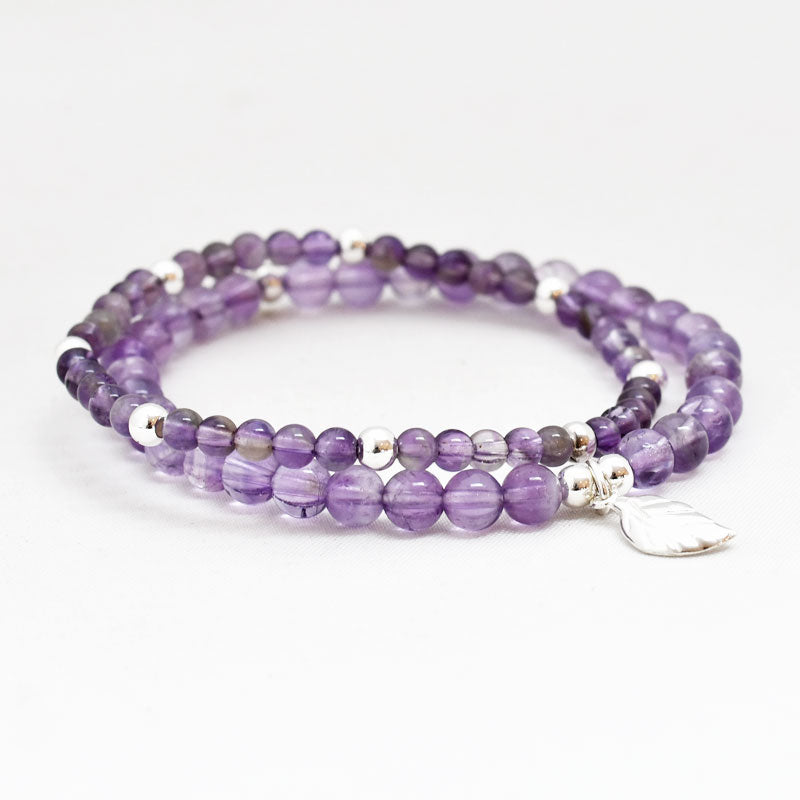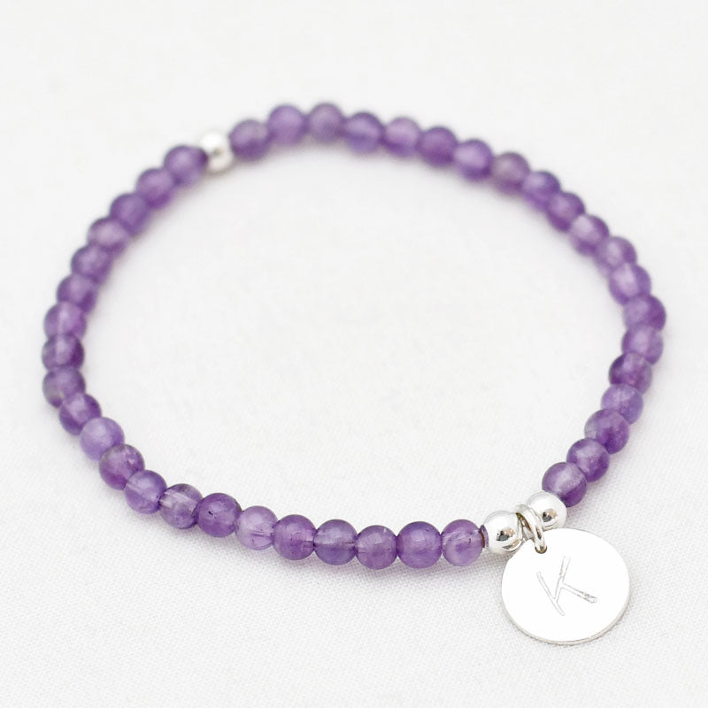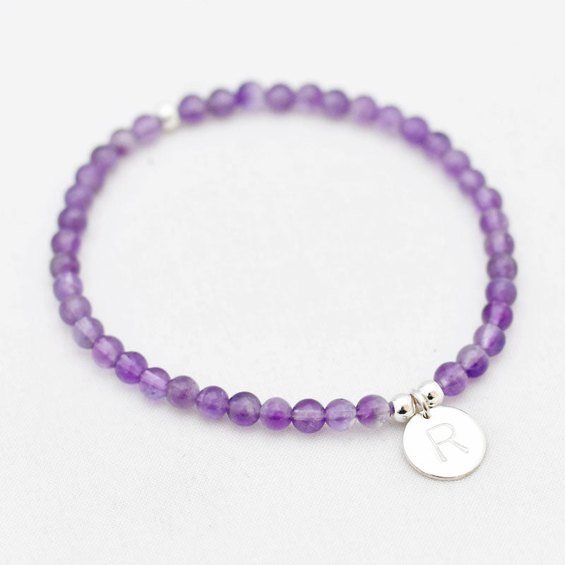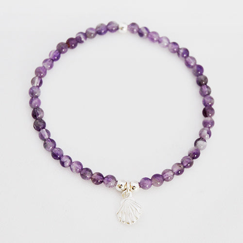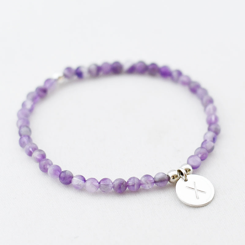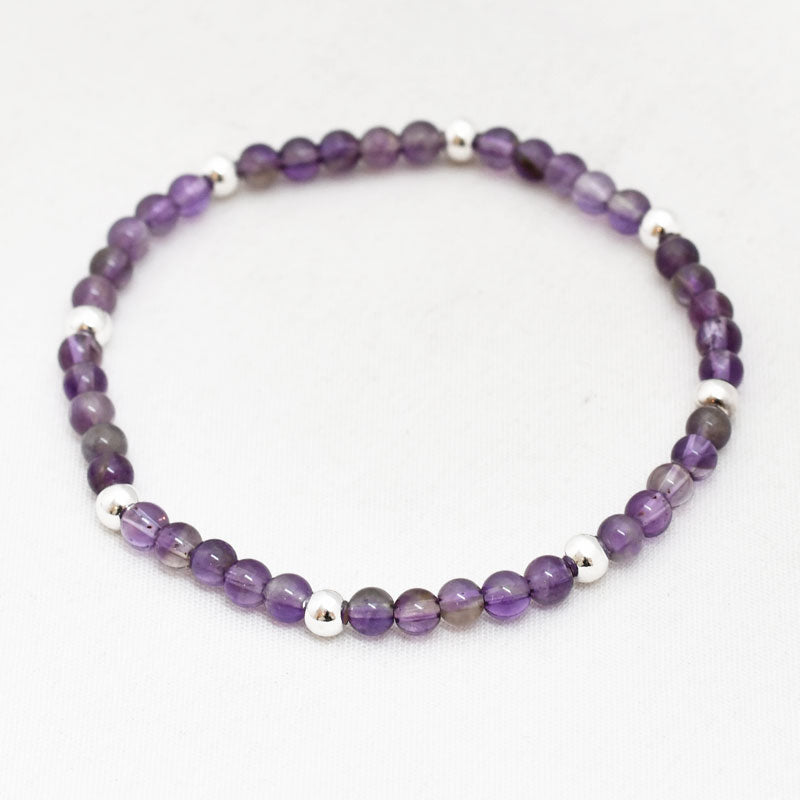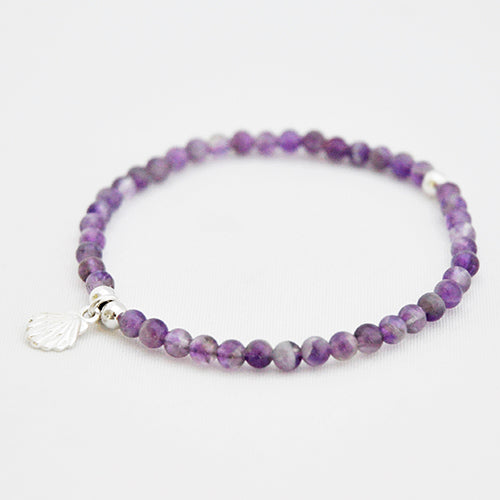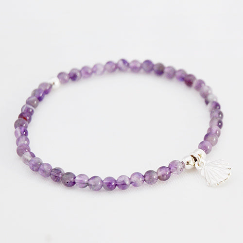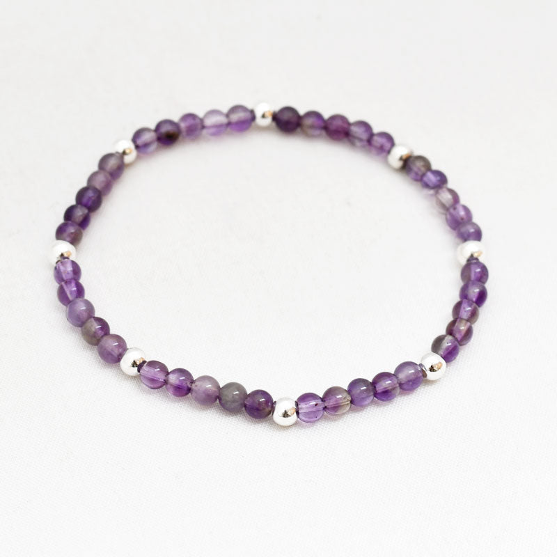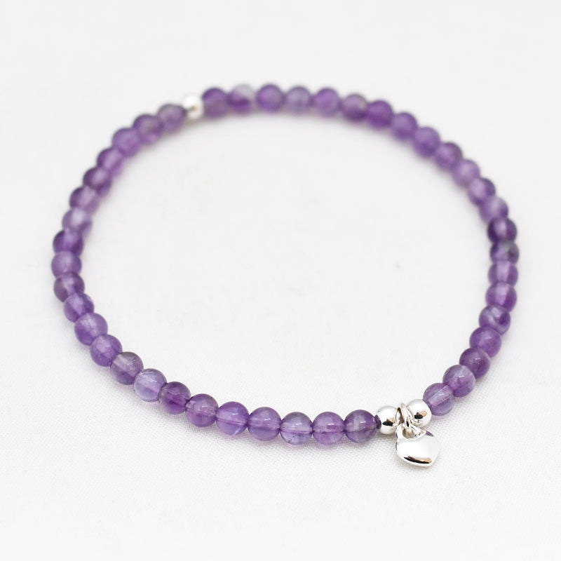 Zilver & Zoet armbandje van edelsteen amethist (4 mm) met een 925 sterling zilver bedeltje.