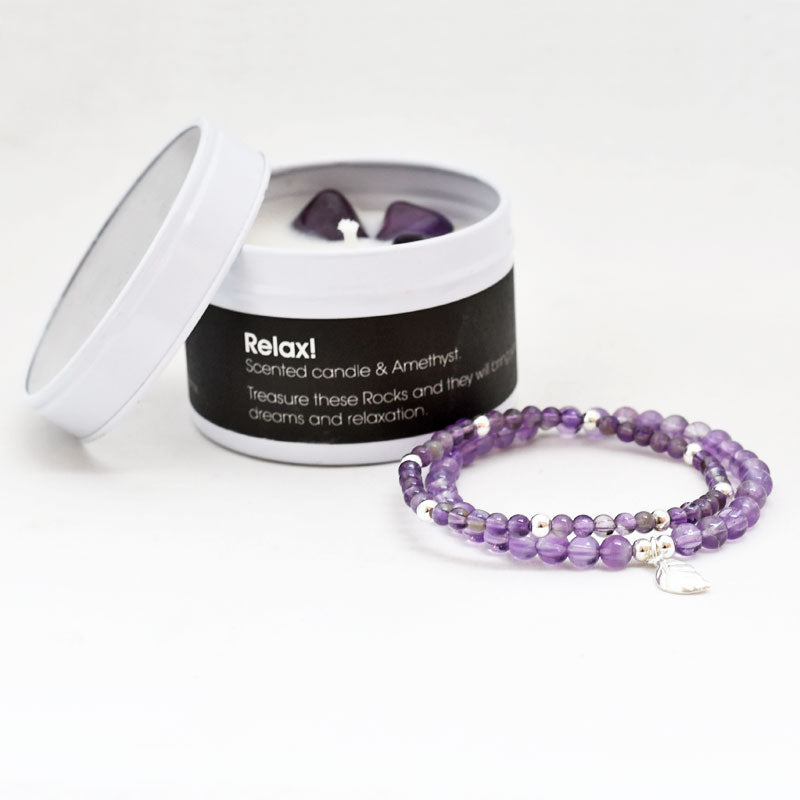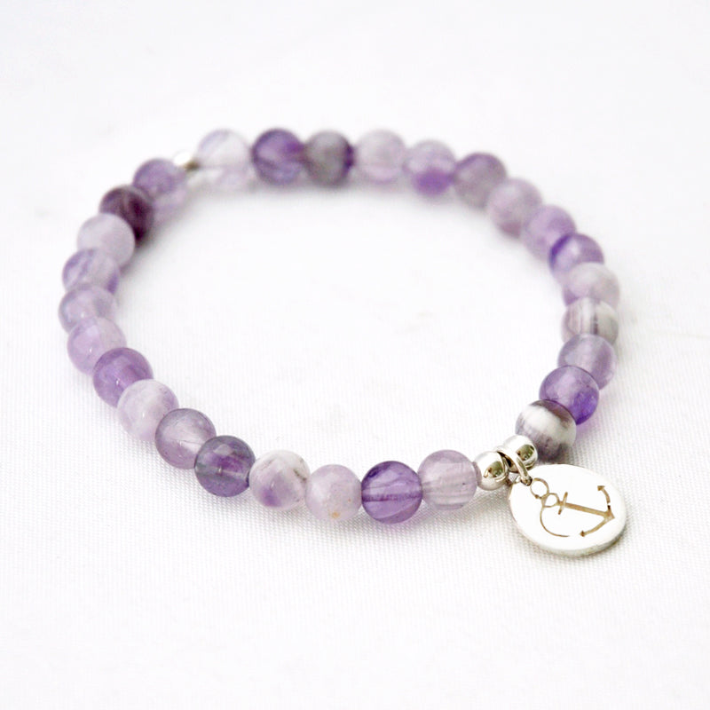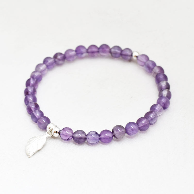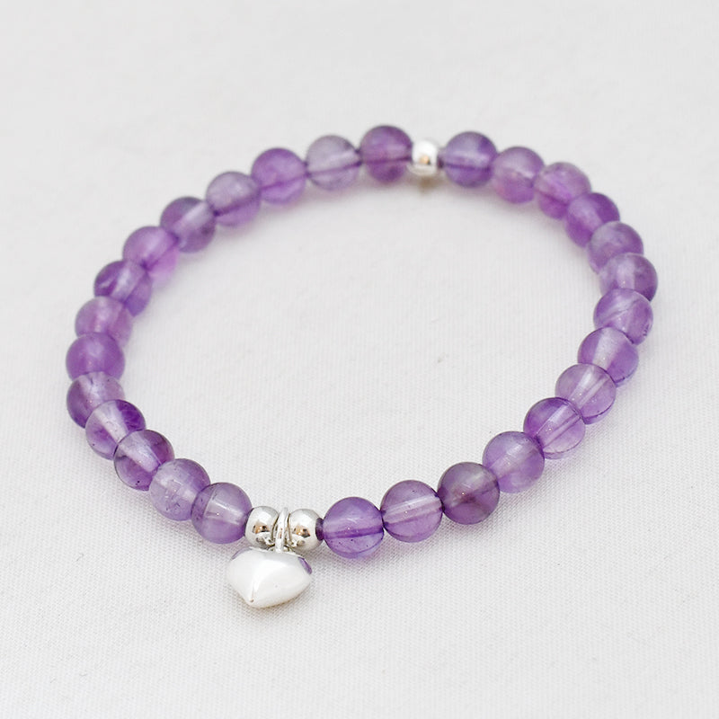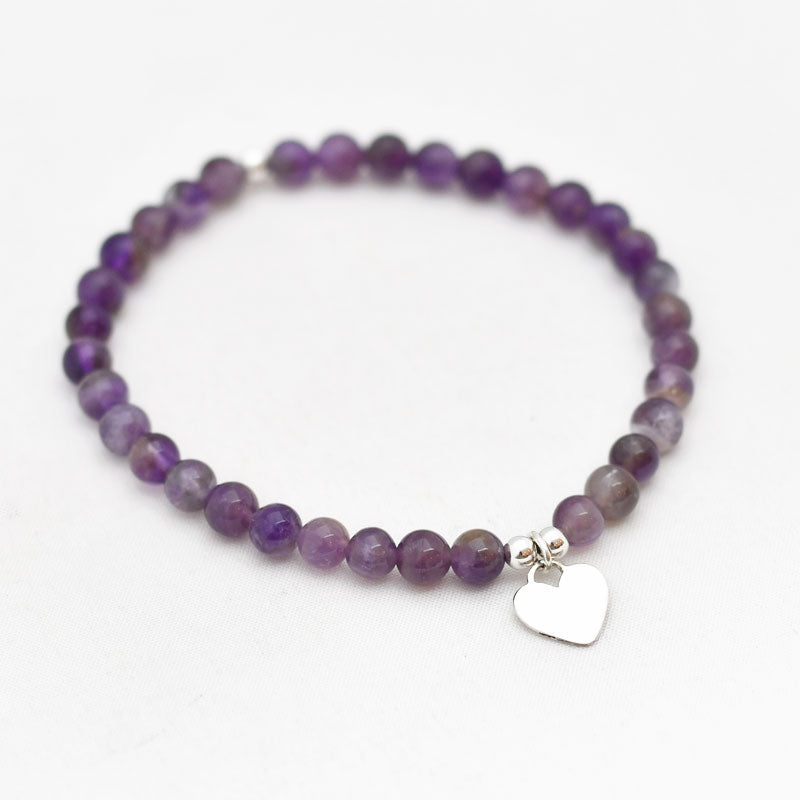 Zilver & Zoet armbandje van edelsteen amethist (6 mm) met een 925 sterling zilver bedeltje.