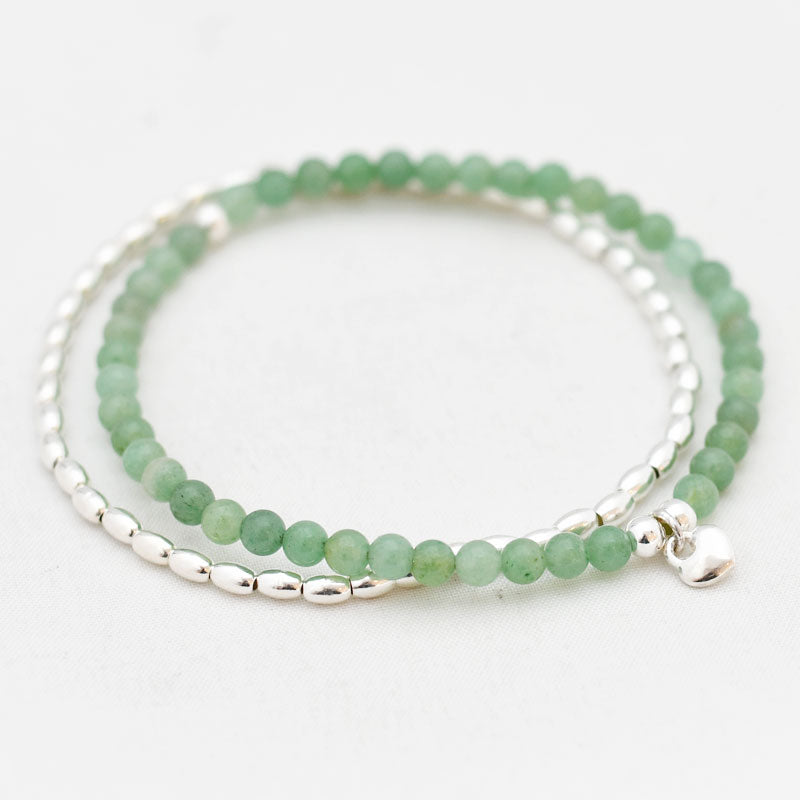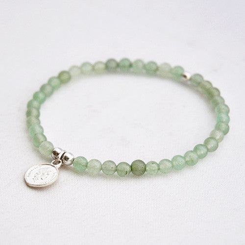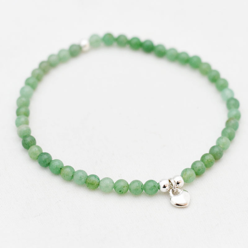 Zilver & Zoet armbandje van edelsteen aventurijn (4 mm) met een 925 sterling zilver bedeltje.