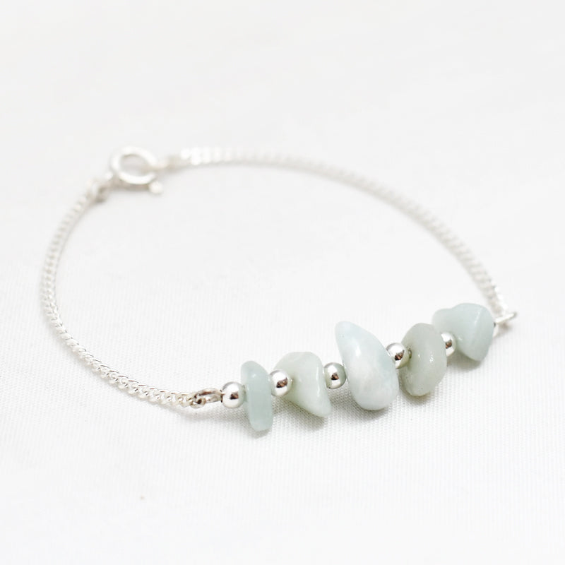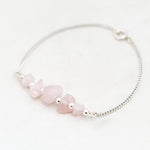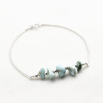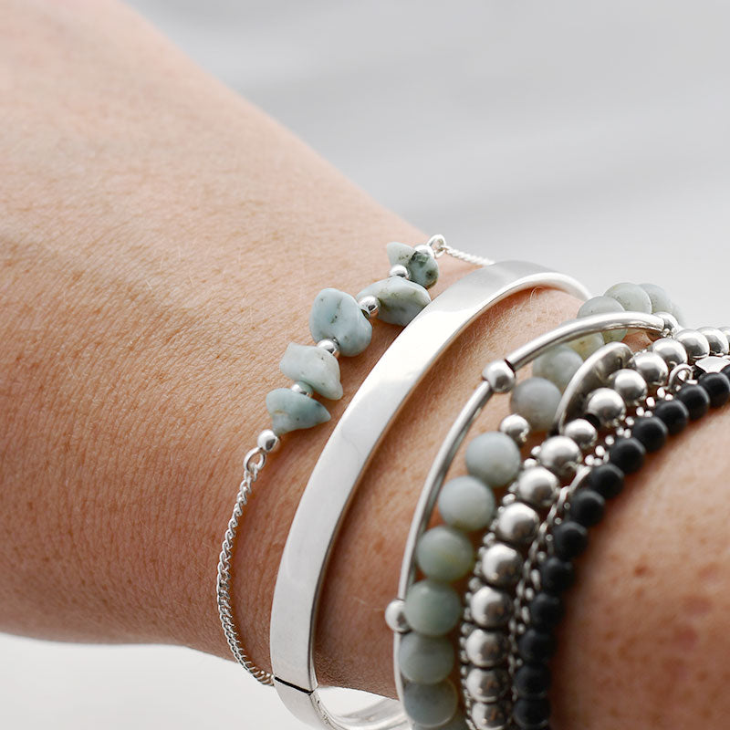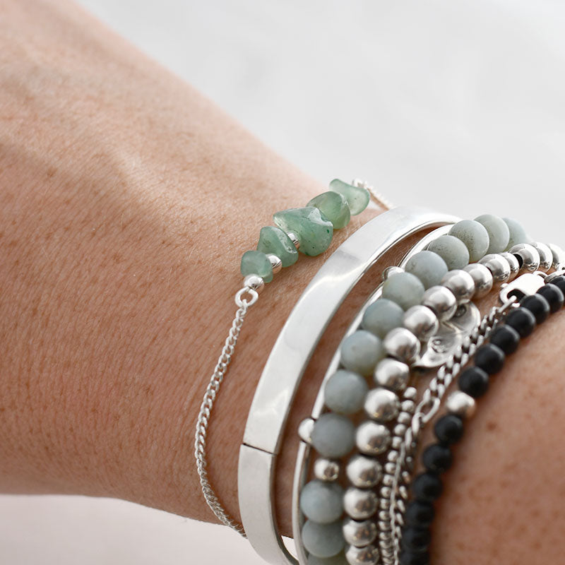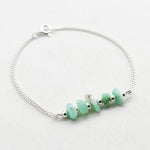 • Fijn armbandje met edelsteen split kralen. Elke kraal is uniek van vorm en kleur, afwisselend met zilveren 3 mm kralen.