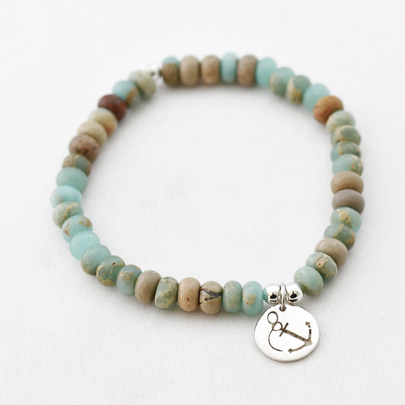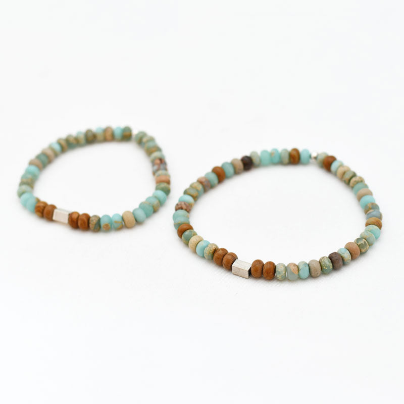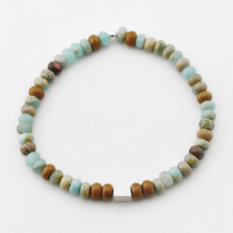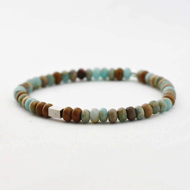 Zilver & Zoet heren armband met Aqua Terra Jaspis edelstenen kralen met sterling 925 zilveren vierkant detail.