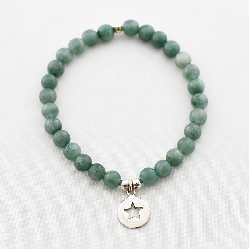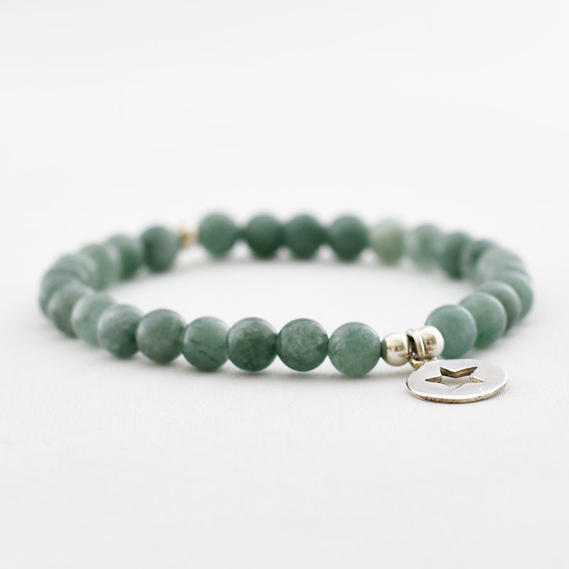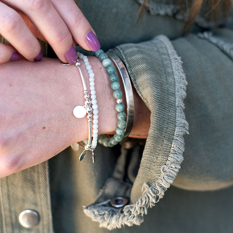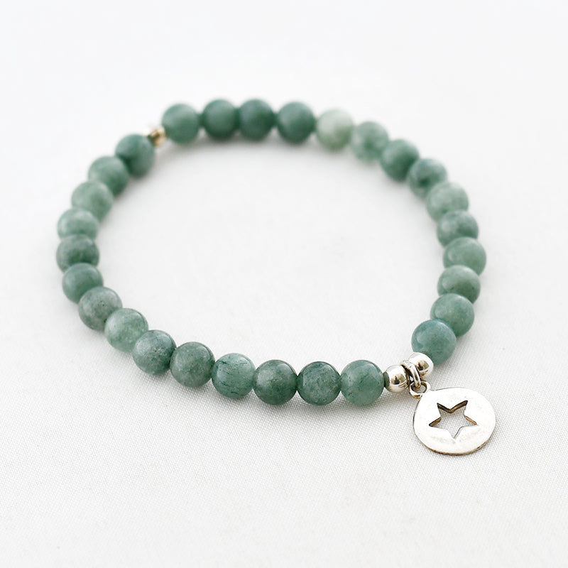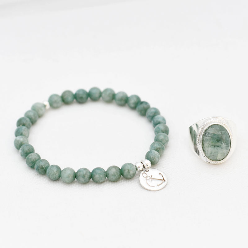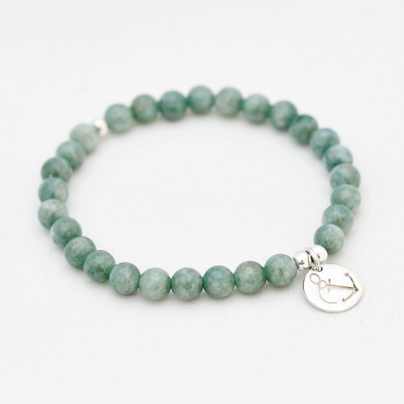 Zilver & Zoet armbandje van edelsteen jade aquamarine (6 mm) met een 925 sterling zilver bedeltje.