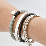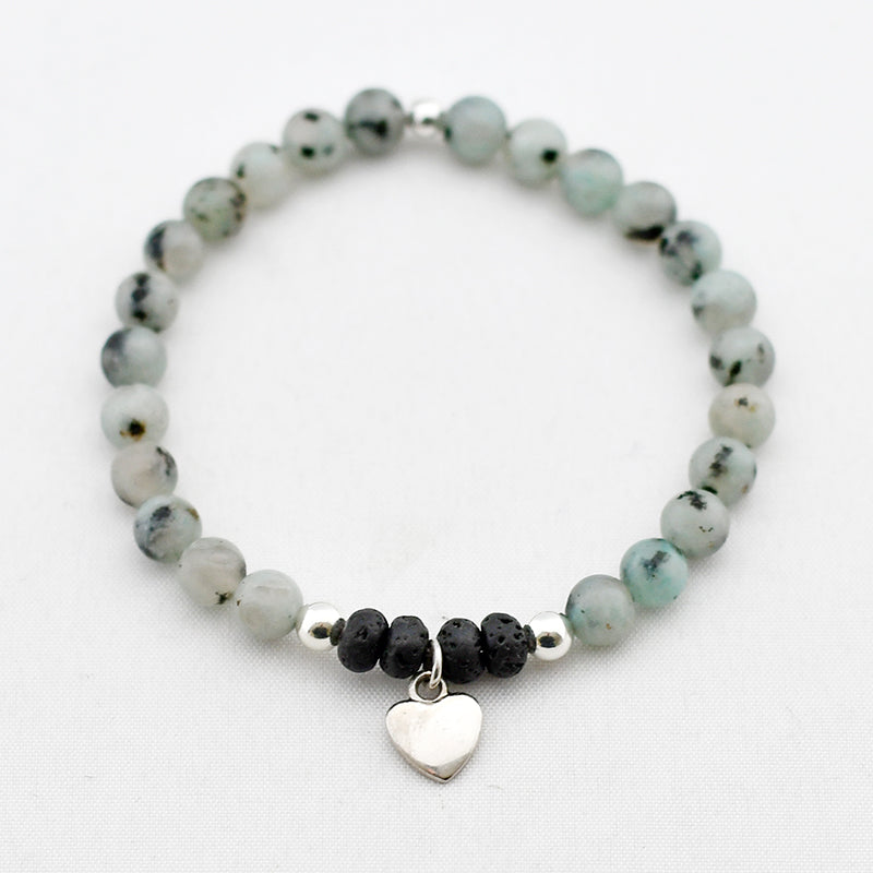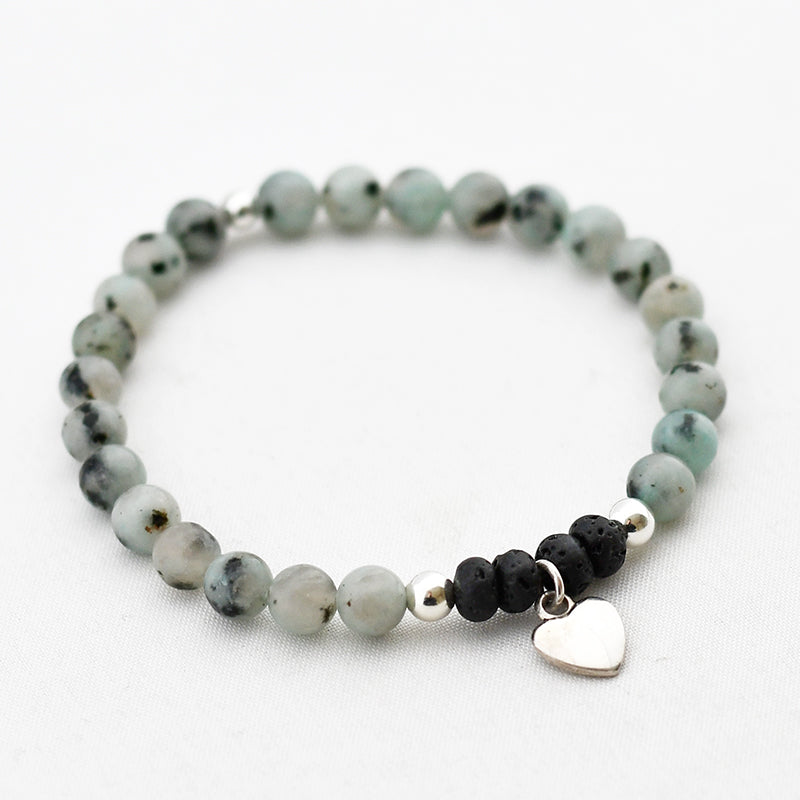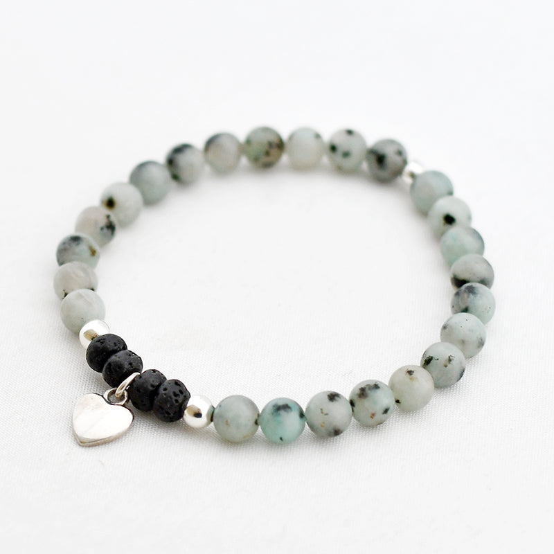 Zilver & Zoet armbandje van edelsteen kiwi jaspis (6 mm) met een 925 sterling zilver bedeltje.