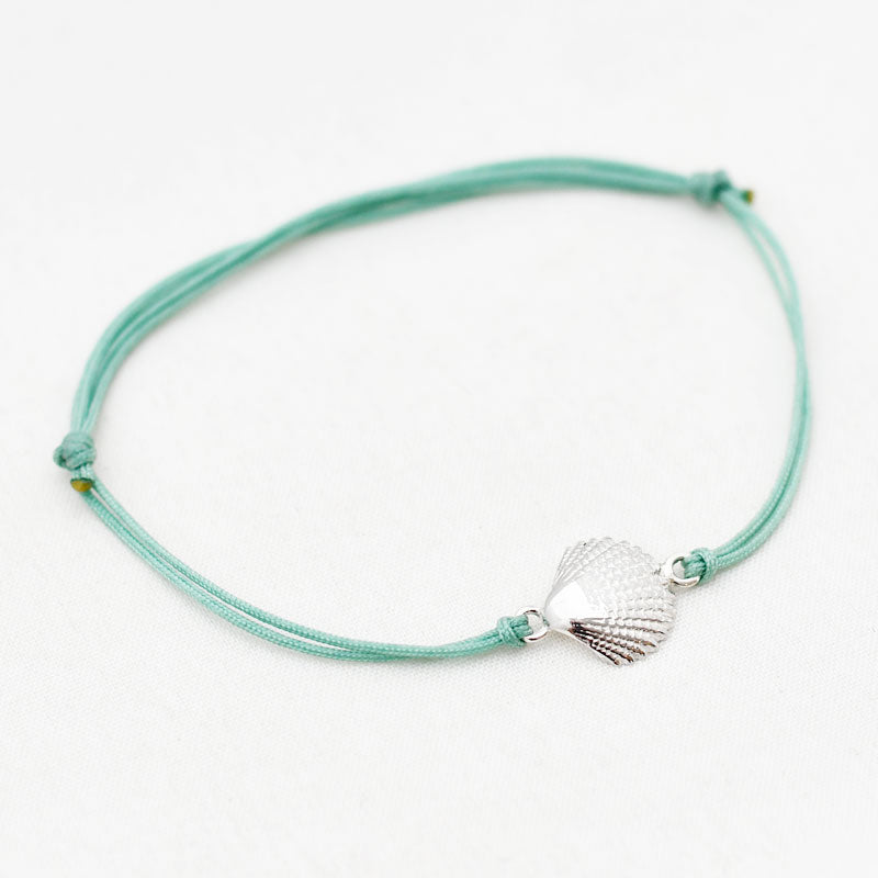 Zilver & Zoet armbandje van een nylon koord met een sterling 925 zilveren schelp.