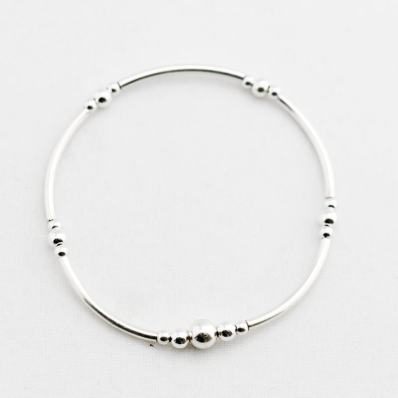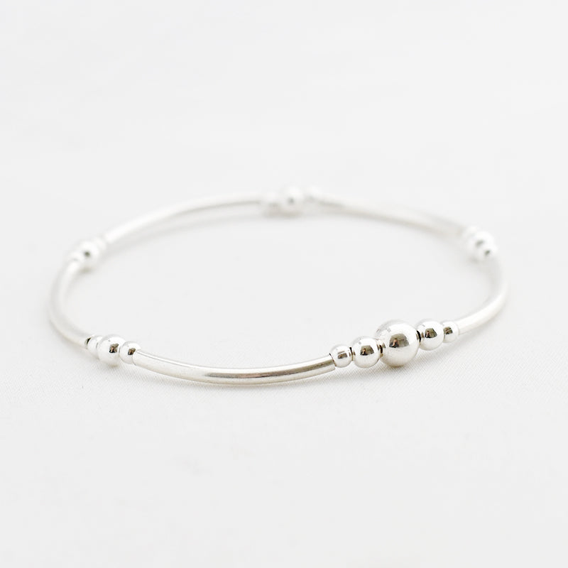 Zilver & Zoet armbandje van zilveren buis kralen met een sterling 925 zilver bedeltje.