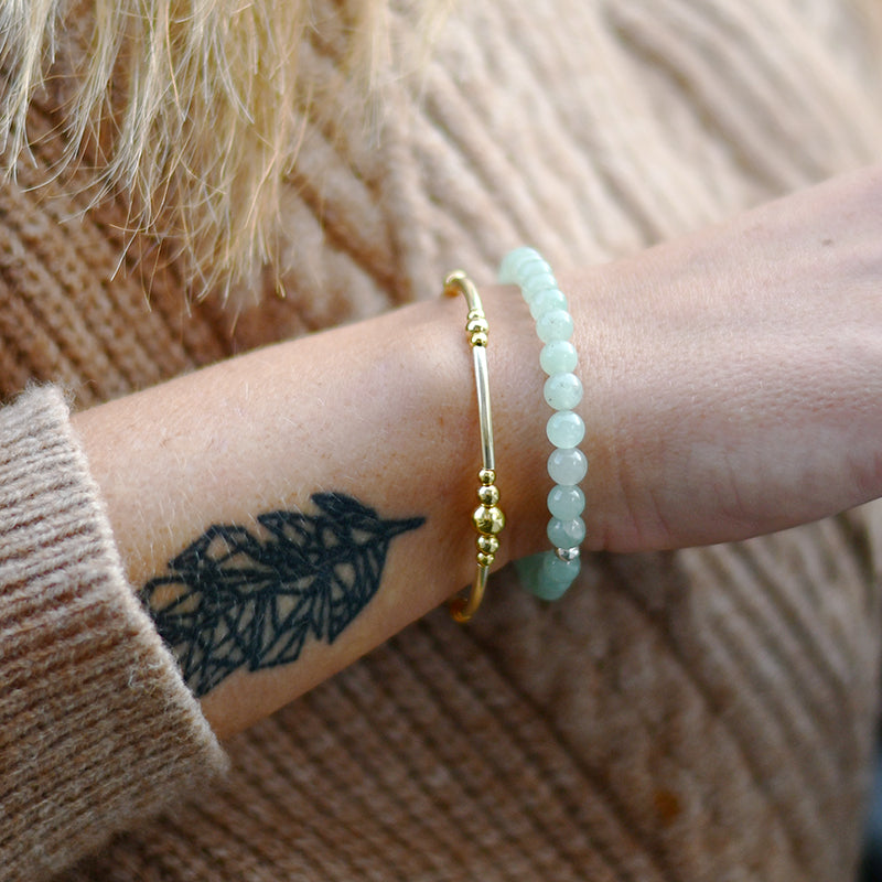 • De kraaltjes worden geregen op een stevig 0,8 mm elastiek.