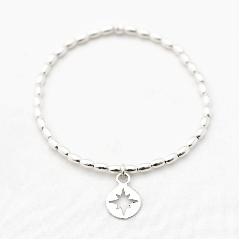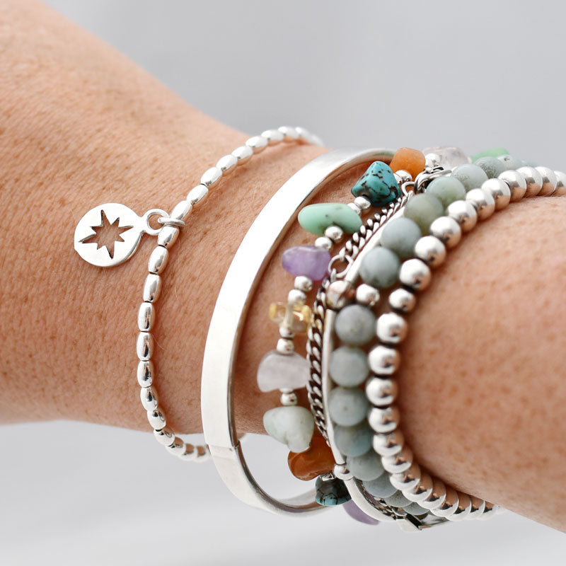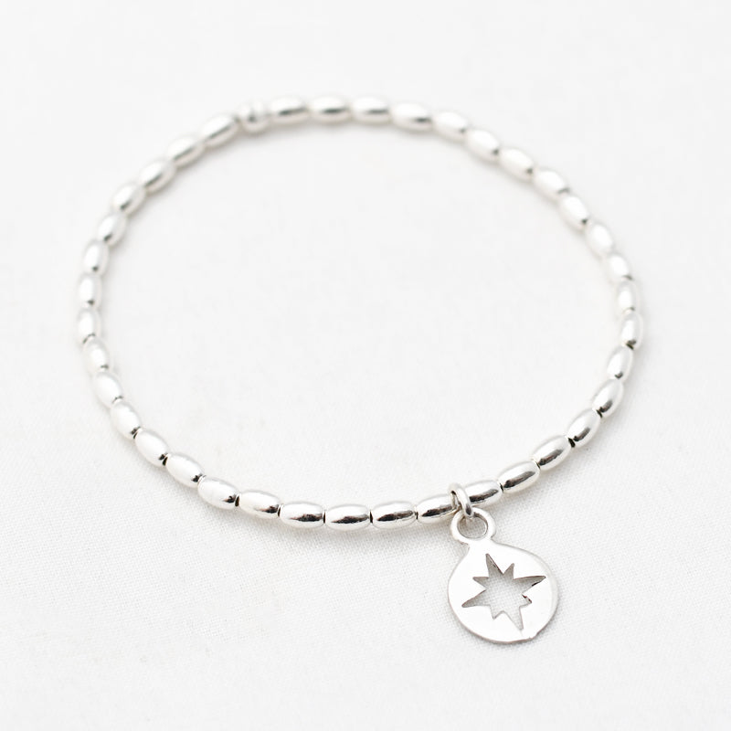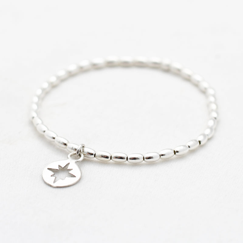Zilver & Zoet armbandje van zilveren ovale kralen met een sterling 925 zilver bedeltje.