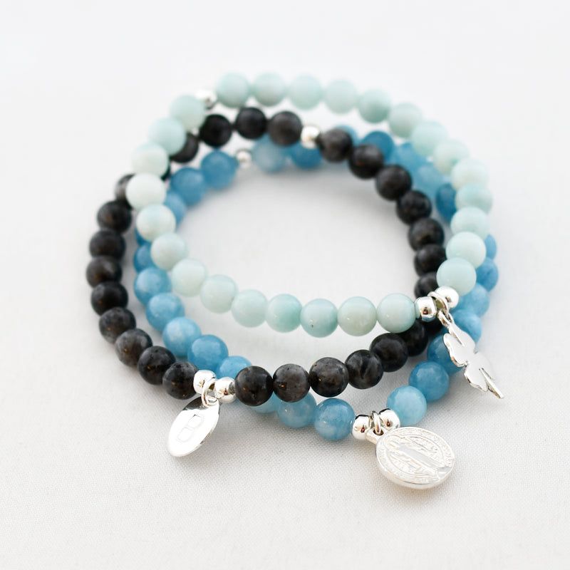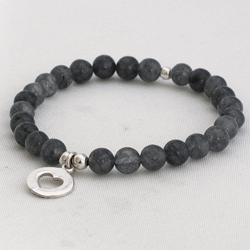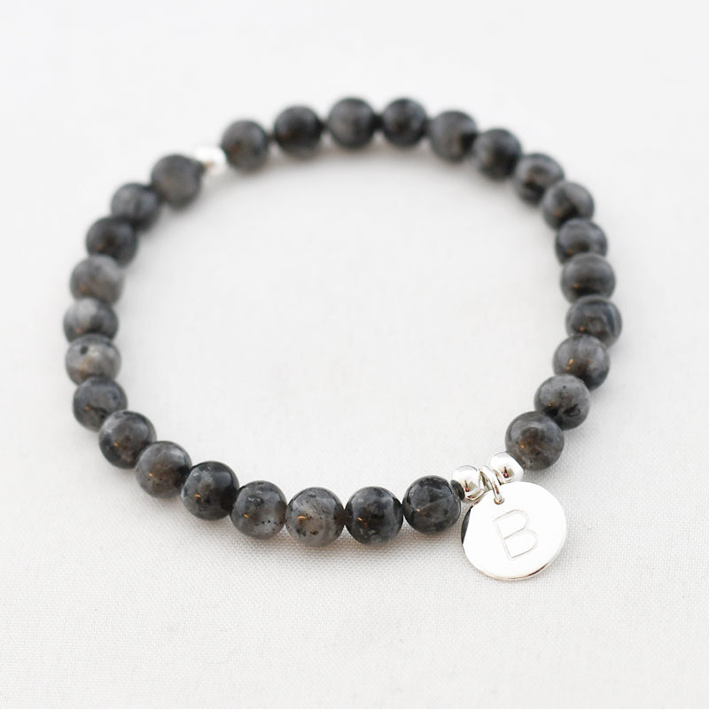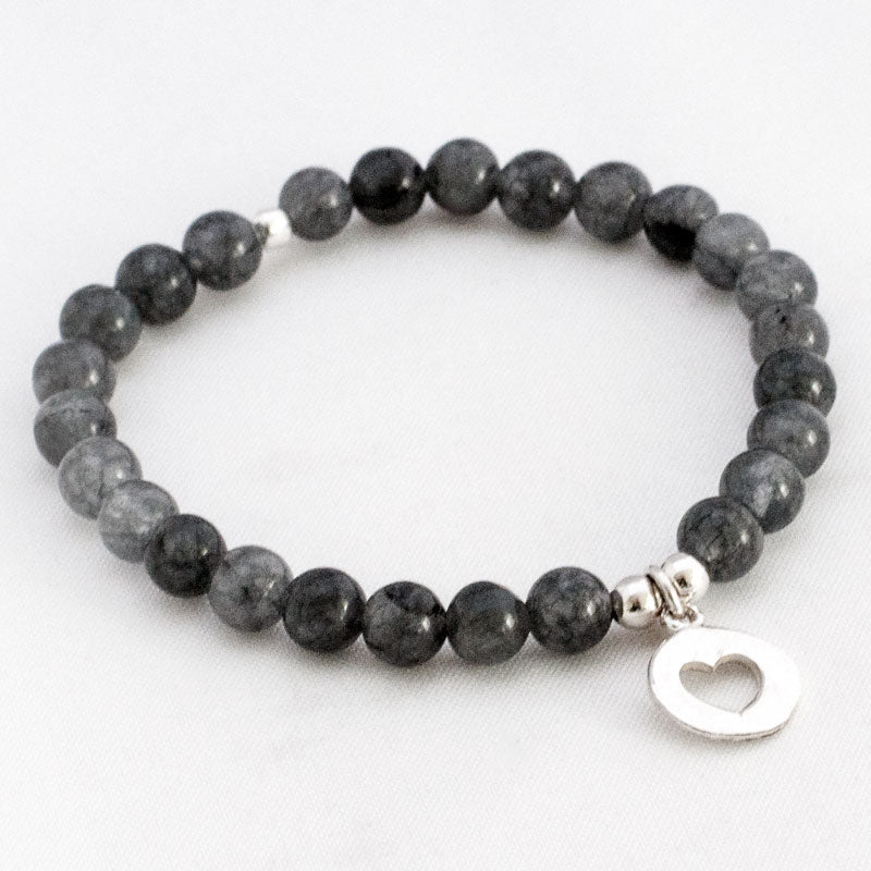 Zilver & Zoet armbandje van edelsteen labradoriet (6 mm) met een 925 zilveren bedeltje.