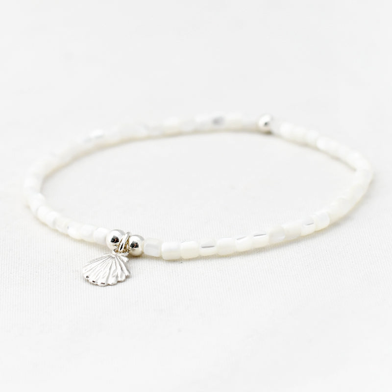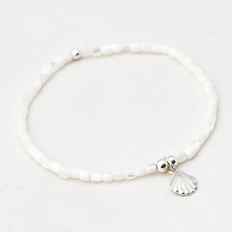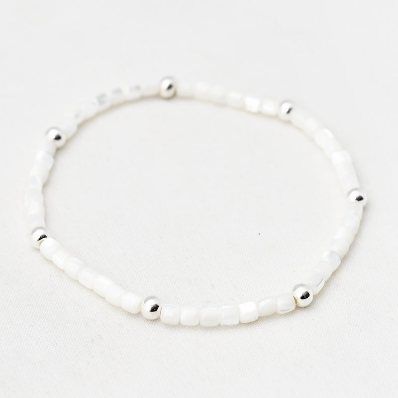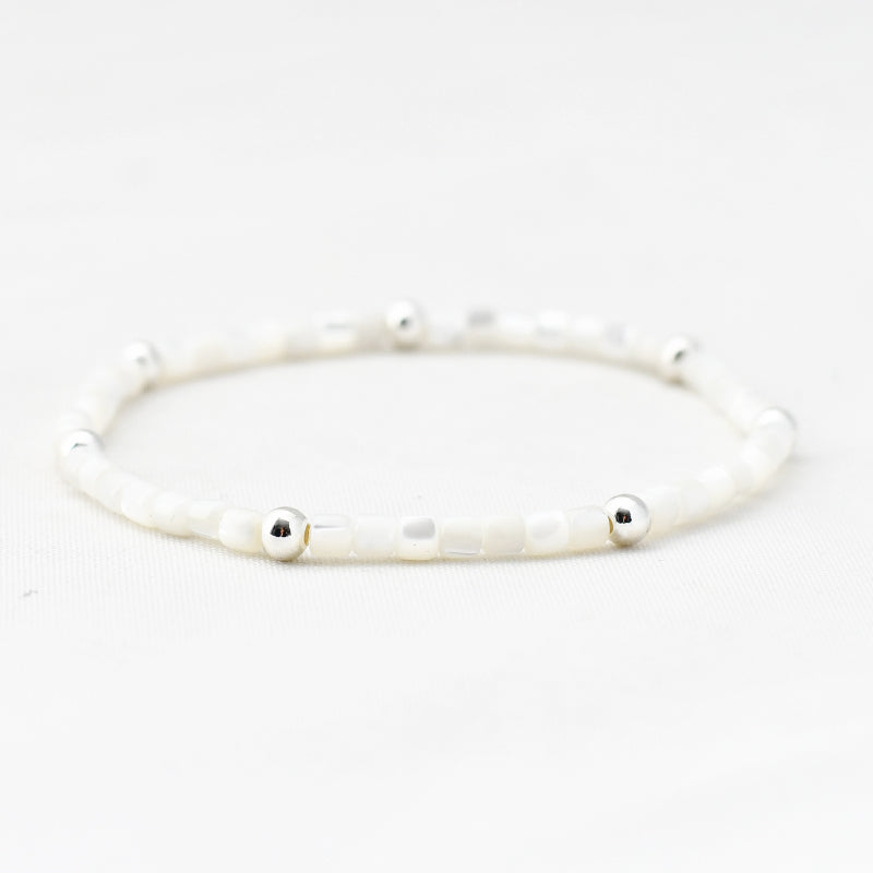 Zilver & Zoet armbandje van vierkante Mother of Pearl kralen (3 mm) in combinatie met 925 sterling zilver.