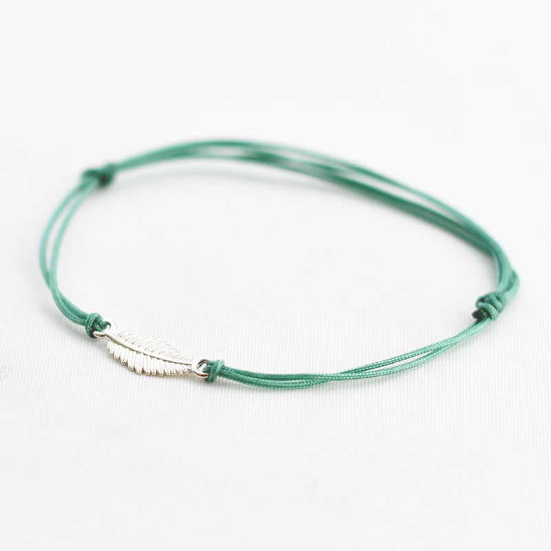 Zilver & Zoet armbandje van een nylon koord met een sterling 925 zilveren plam blad tussenbedel.
