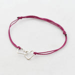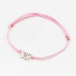 Zilver & Zoet armbandje van een nylon koord met twee sterling 925 zilveren hartjes in elkaar.