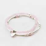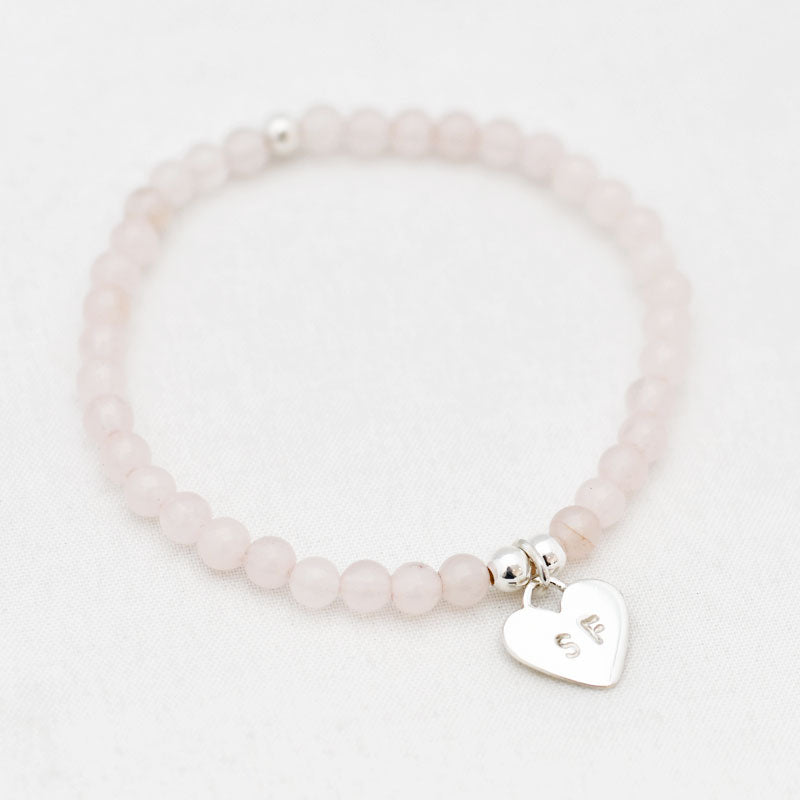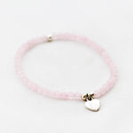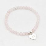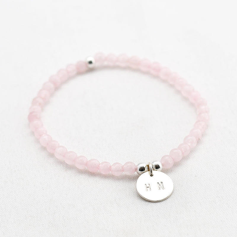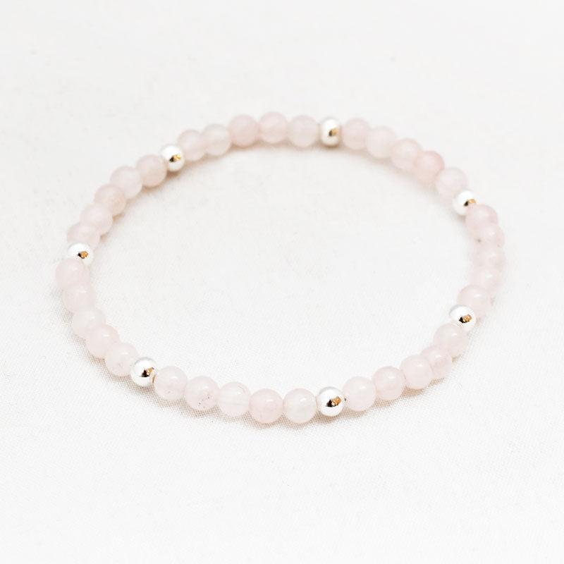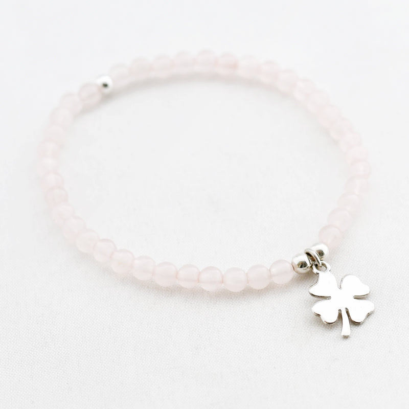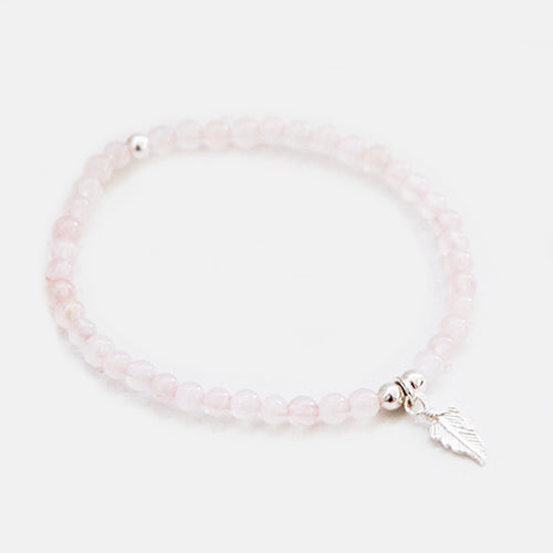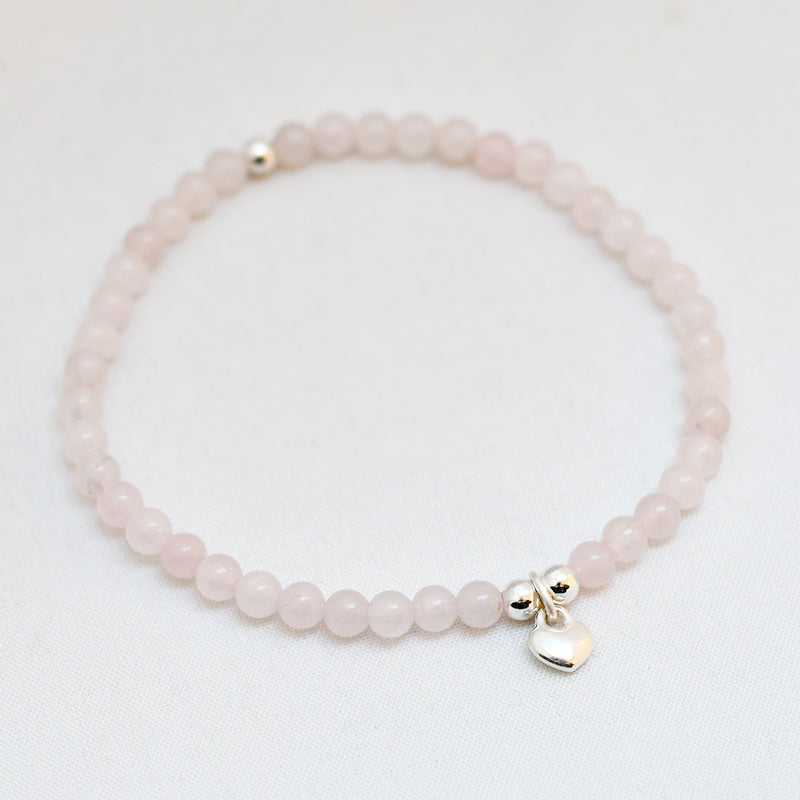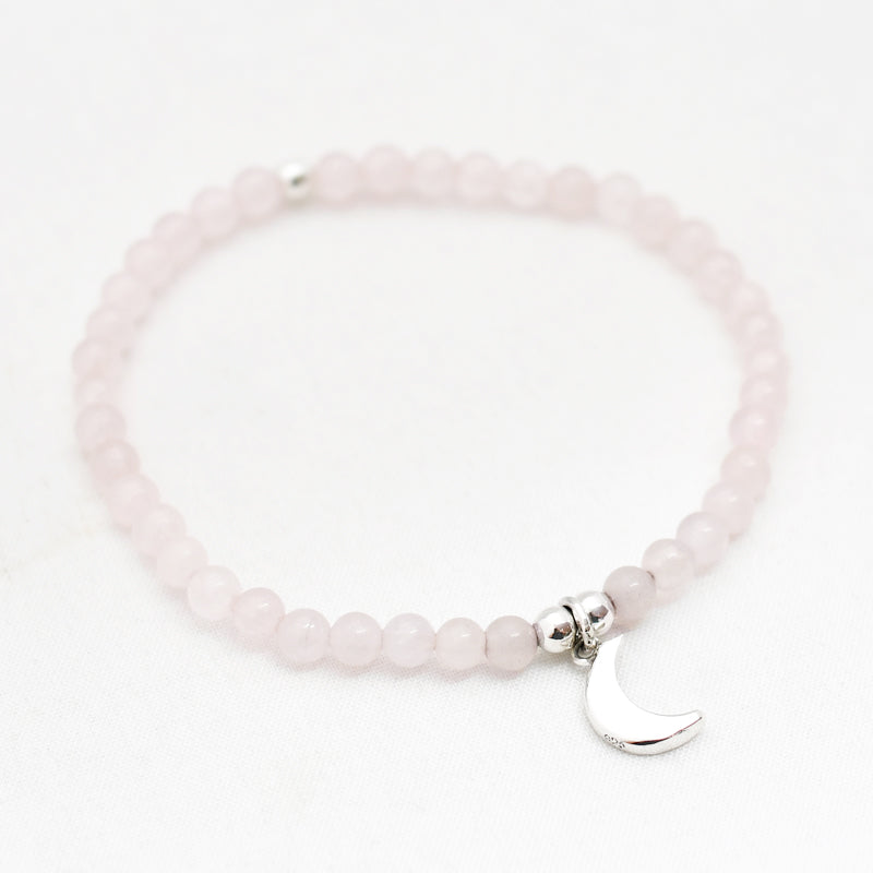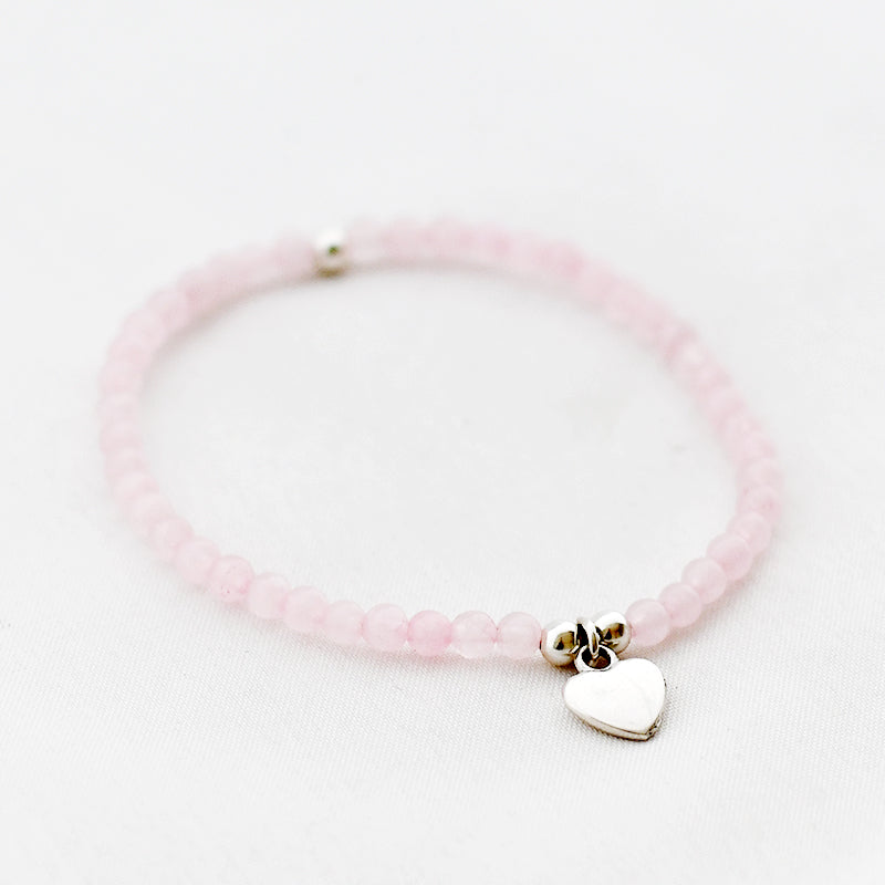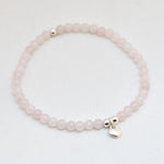 Zilver & Zoet armbandje van edelsteen rozenkwarts (4 mm) met een 925 sterling zilver bedeltje.