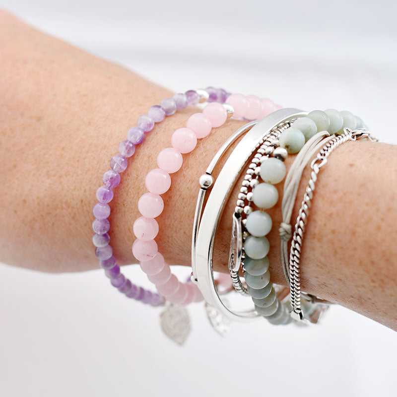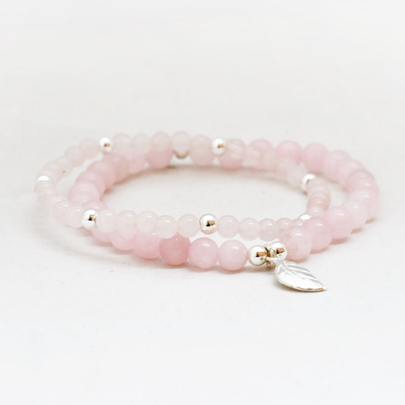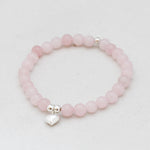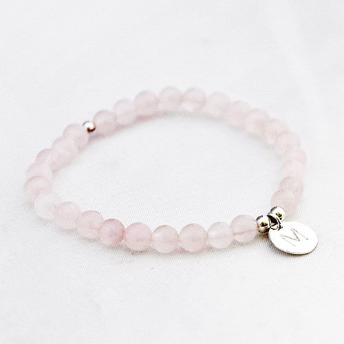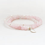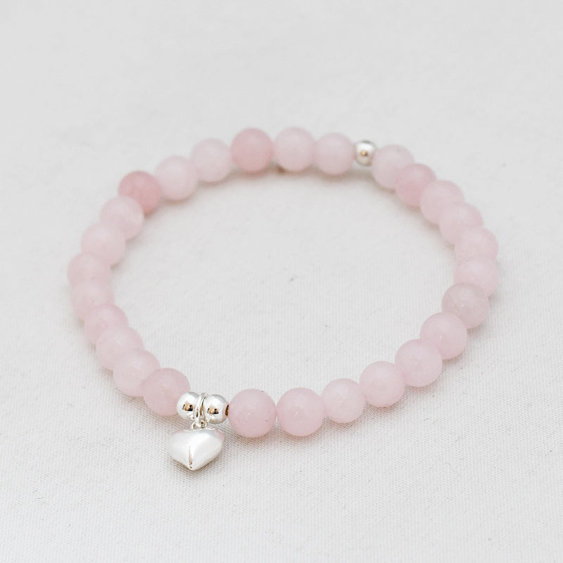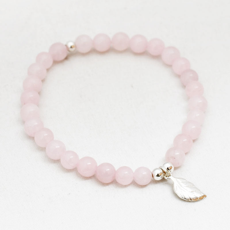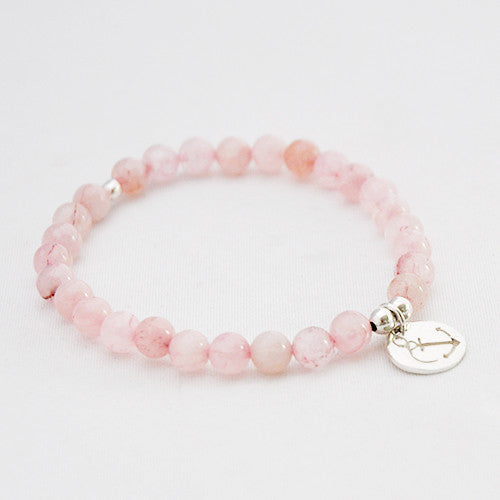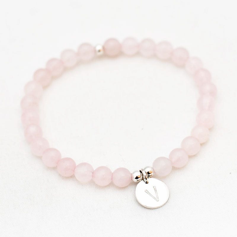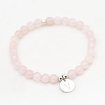 Zilver & Zoet armbandje van edelsteen rozenkwarts (6 mm) met een 925 sterling zilver bedeltje.