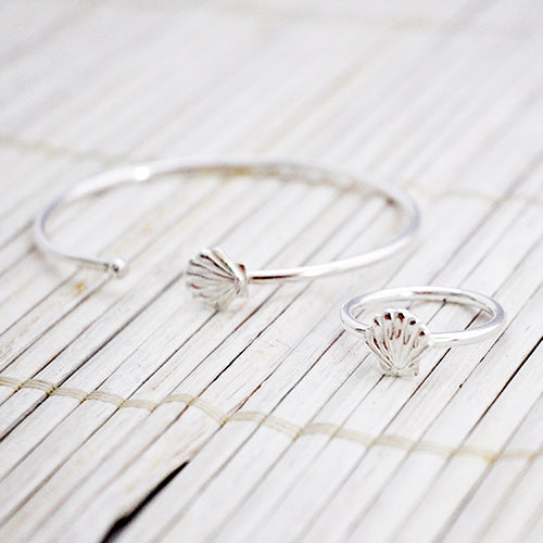 Zilver & Zoet cuff armband van sterling 925 zilver met een schelp.