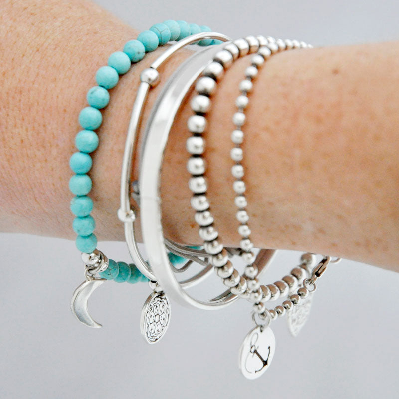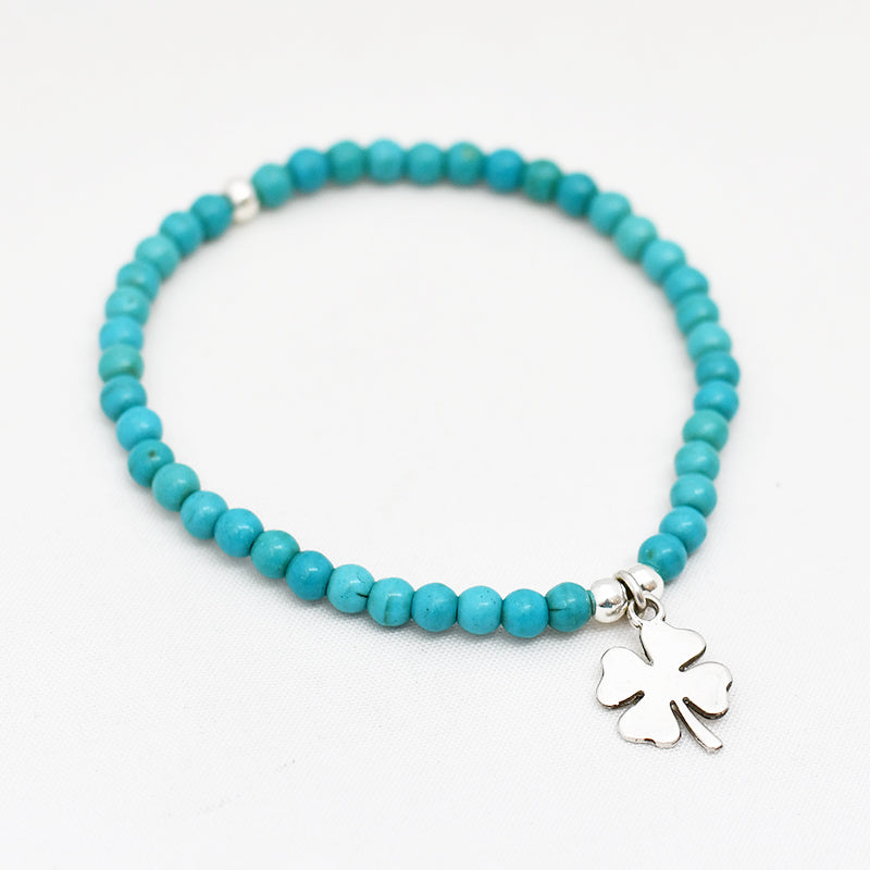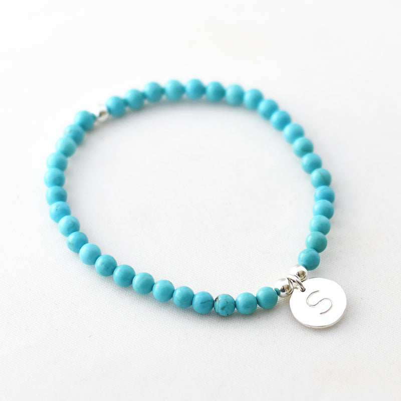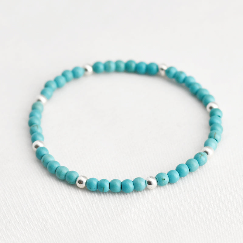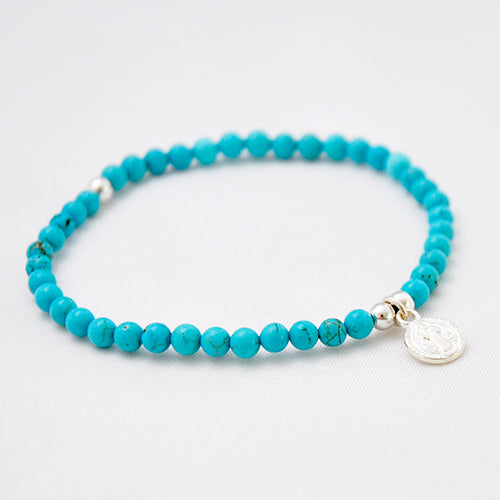 Zilver & Zoet armbandje van edelsteen turquoise (4 mm) met een 925 sterling zilver bedeltje.