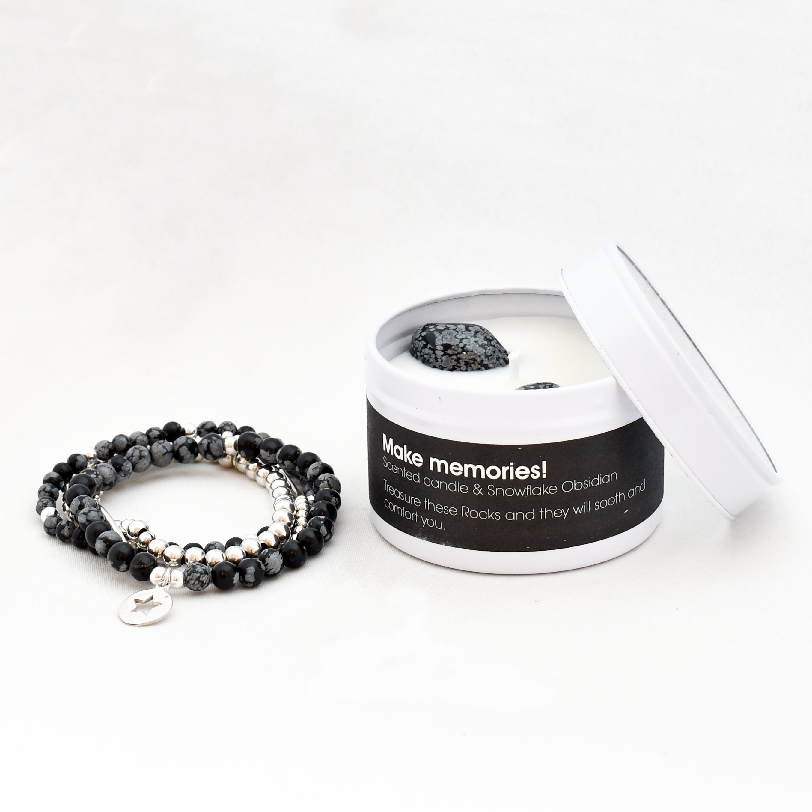 Rockstyle edelsteen geurkaars sneeuwvlok obsidiaan