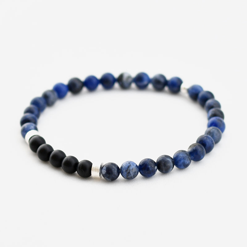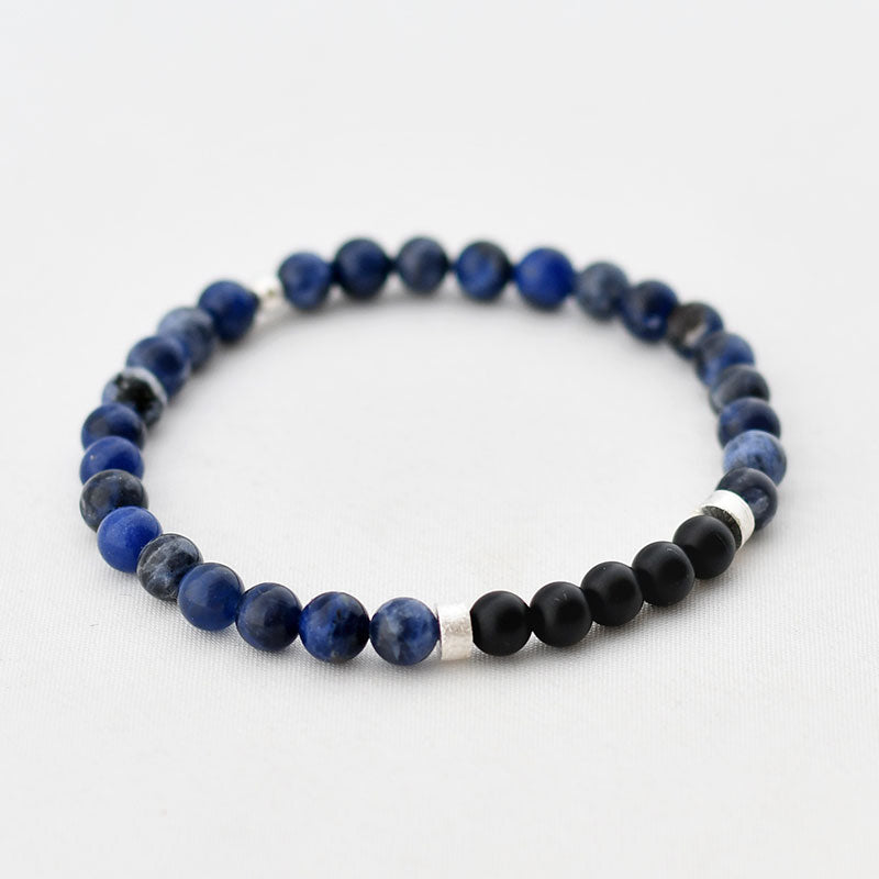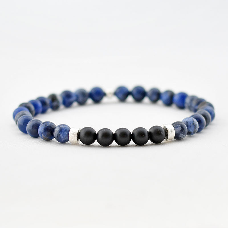 Zilver & Zoet heren armband met sodaliet edelstenen kralen met sterling 925 zilveren vierkant detail.