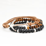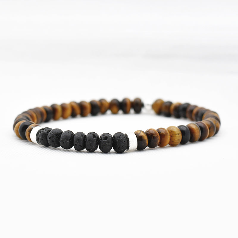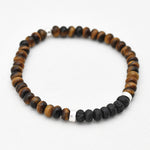 Zilver & Zoet armband met tijgeroog en lava edelsteen disk kralen in combinatie met sterling 925 zilveren schijfjes.