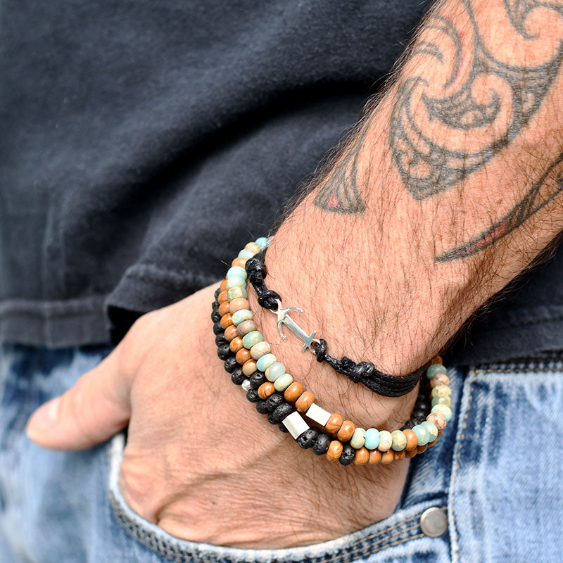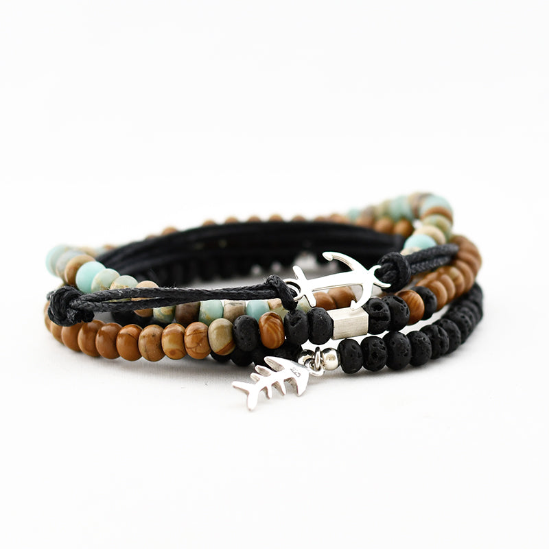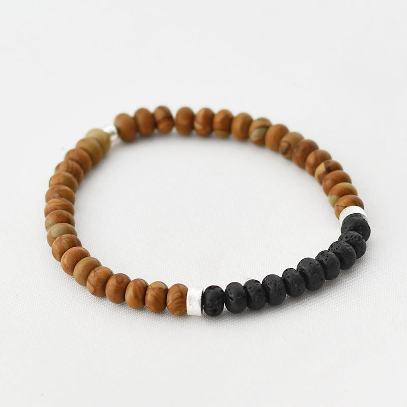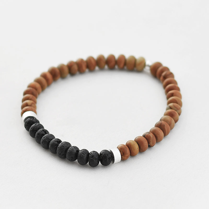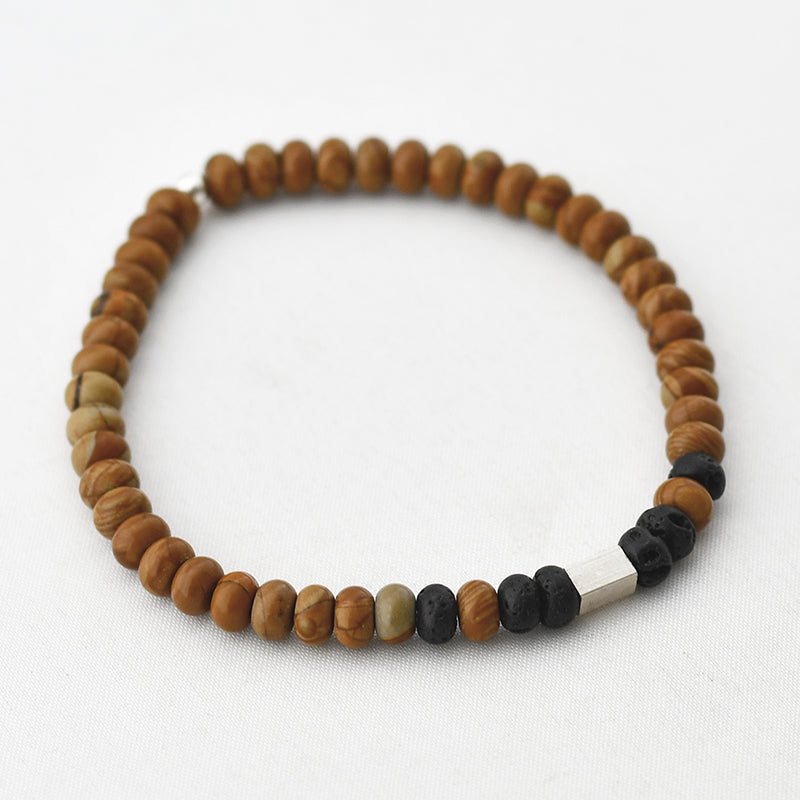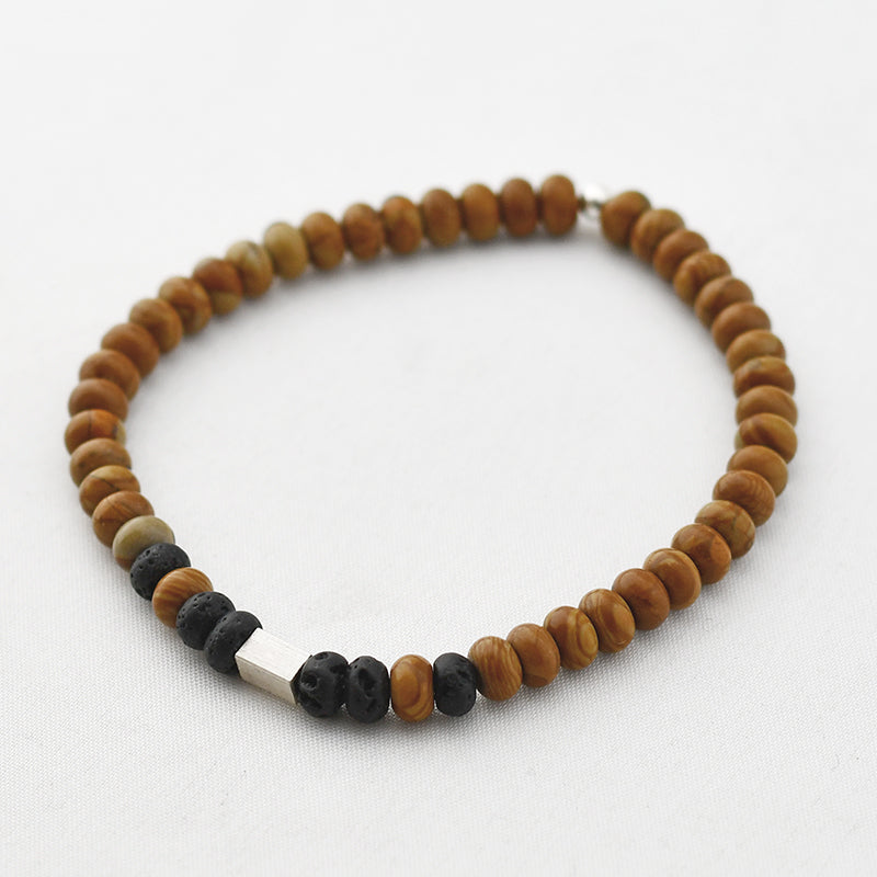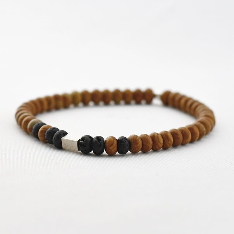 Zilver & Zoet armband met edelstenen kralen met sterling 925 zilveren vierkant detail.