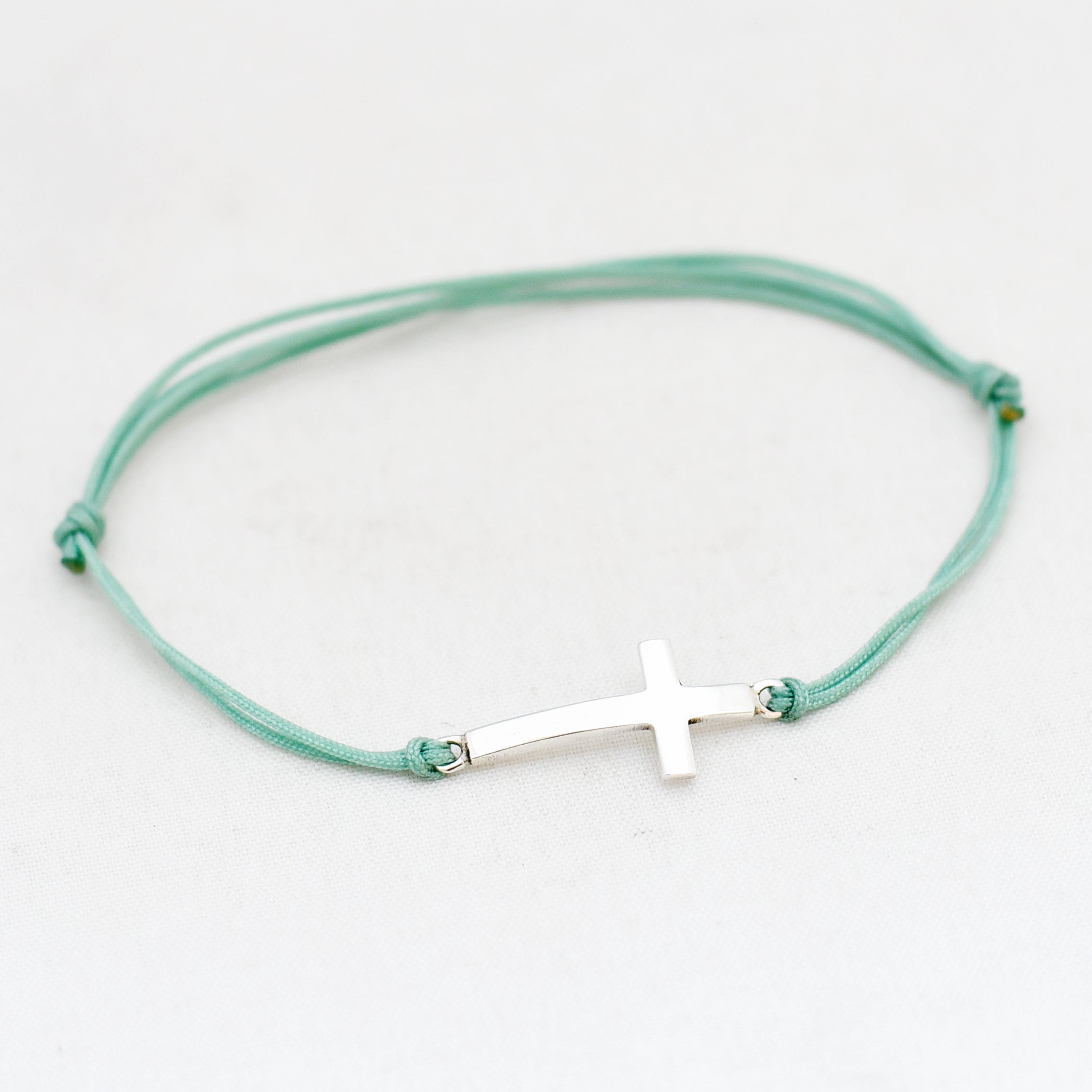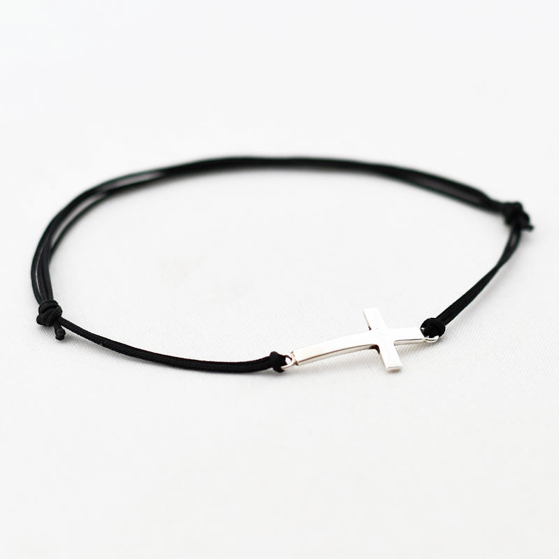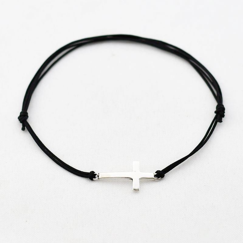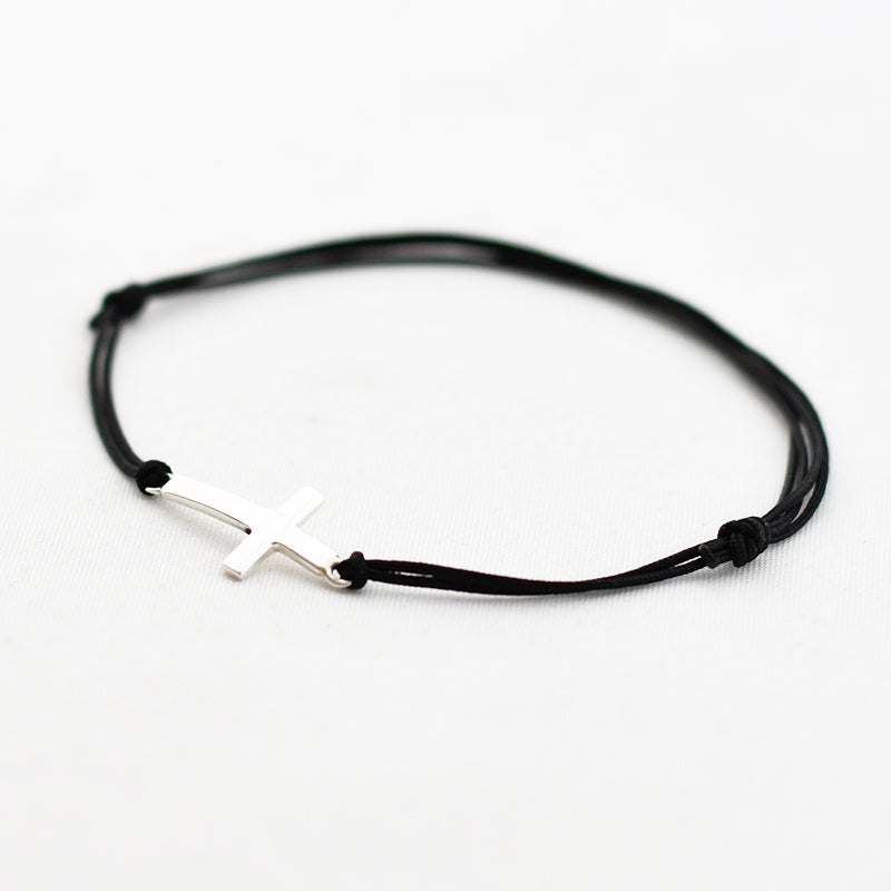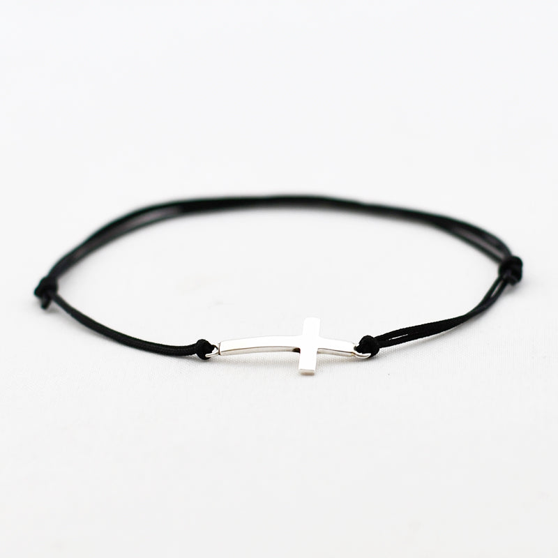 Zilver & Zoet armbandje van een nylon koord met een 925 sterling zilveren kruis.