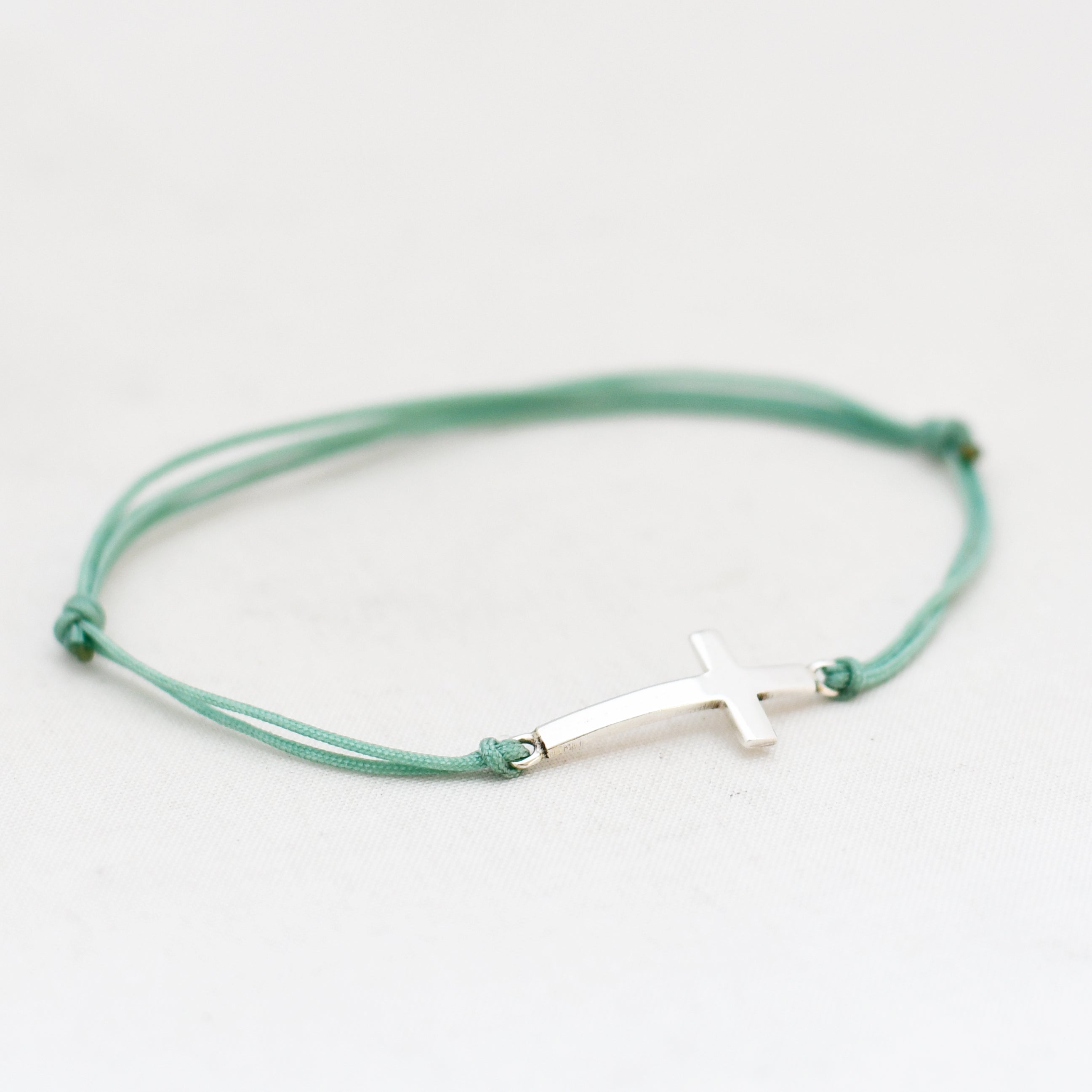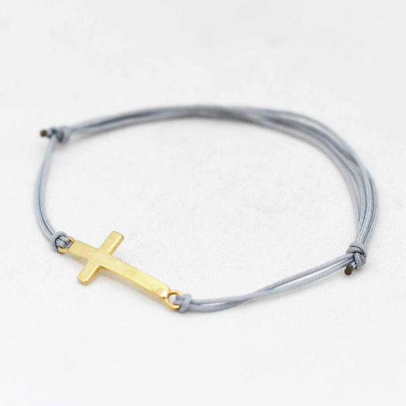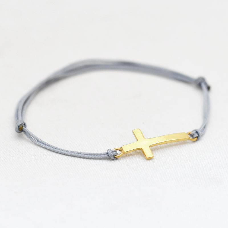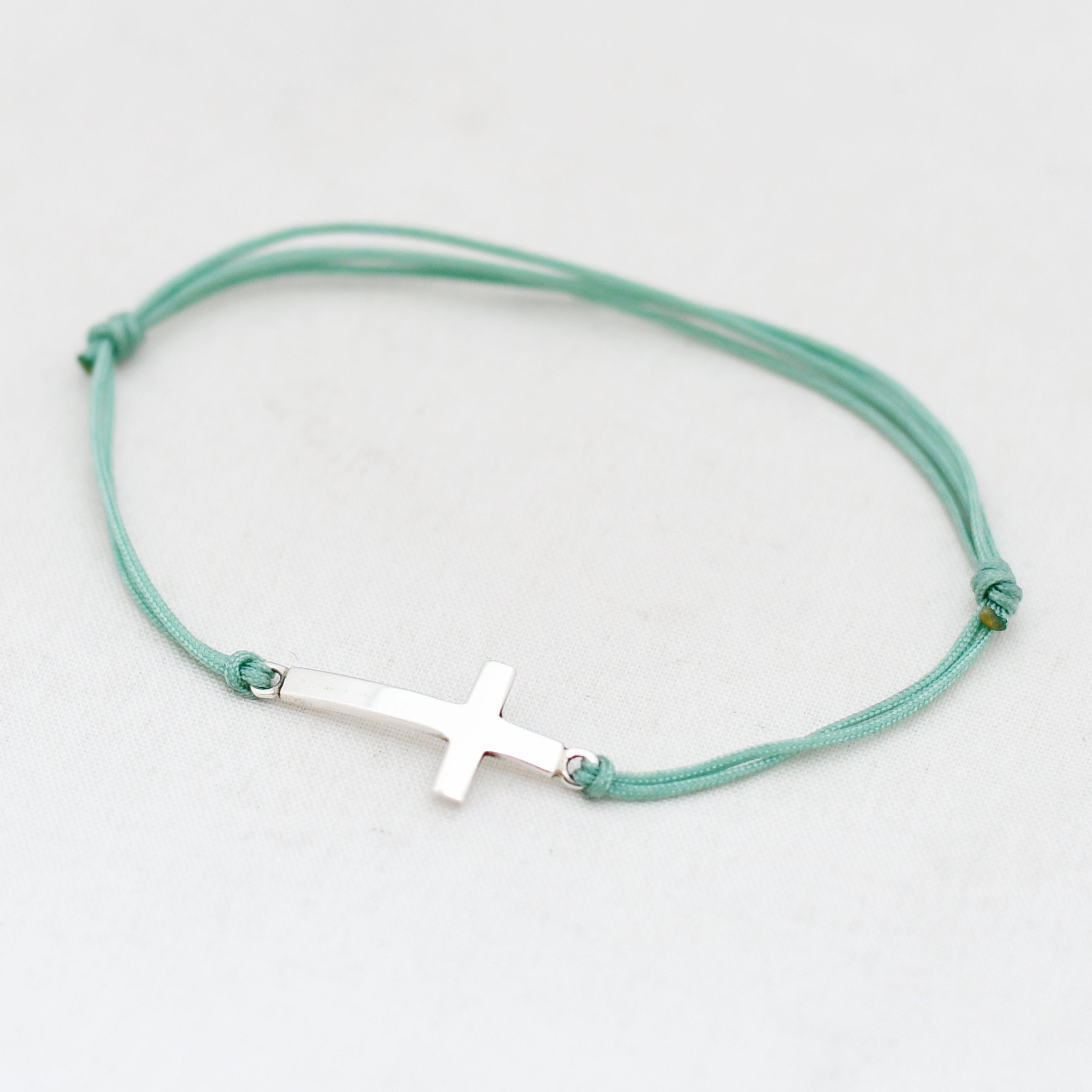 Zilver & Zoet armbandje van een nylon koord met een 925 sterling zilveren kruis.