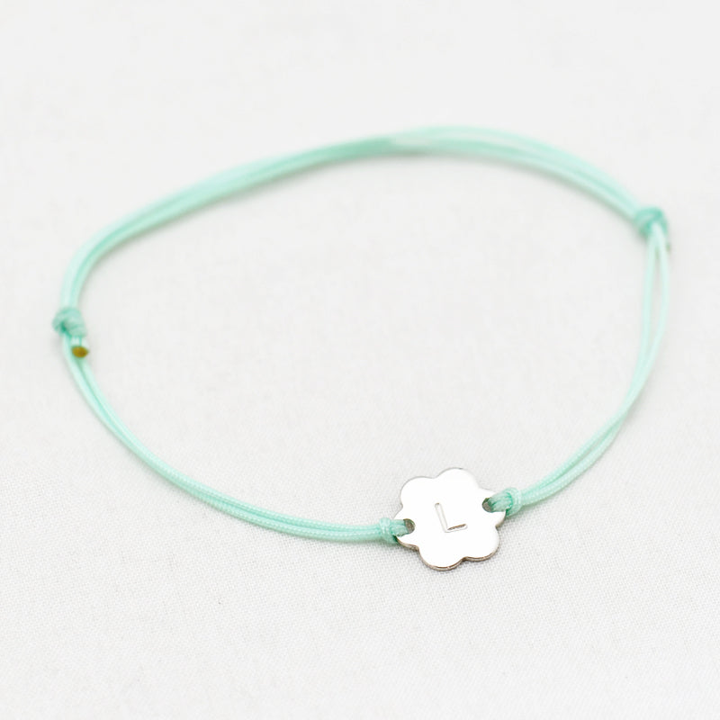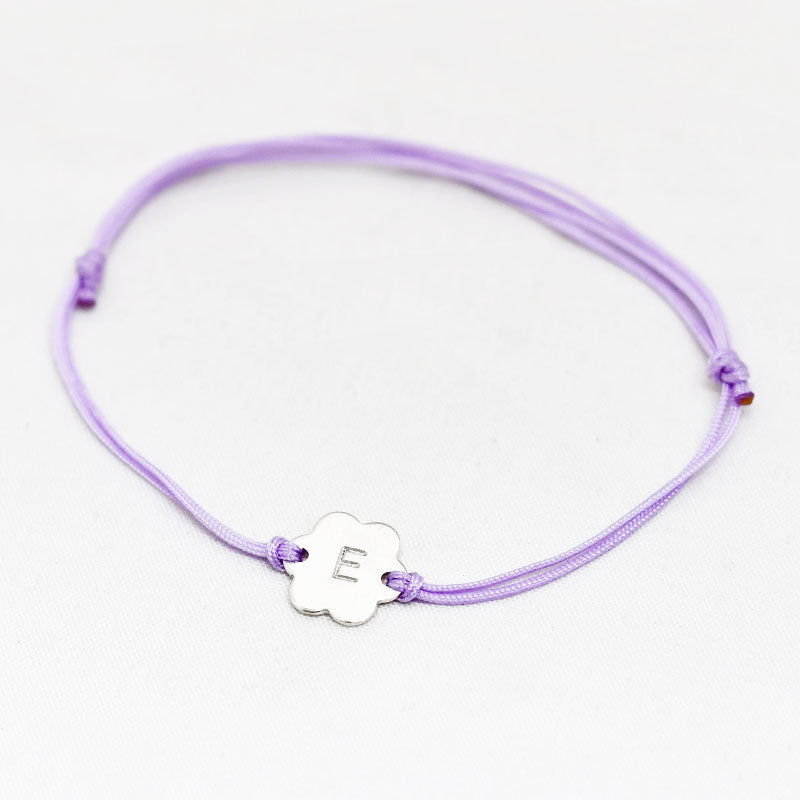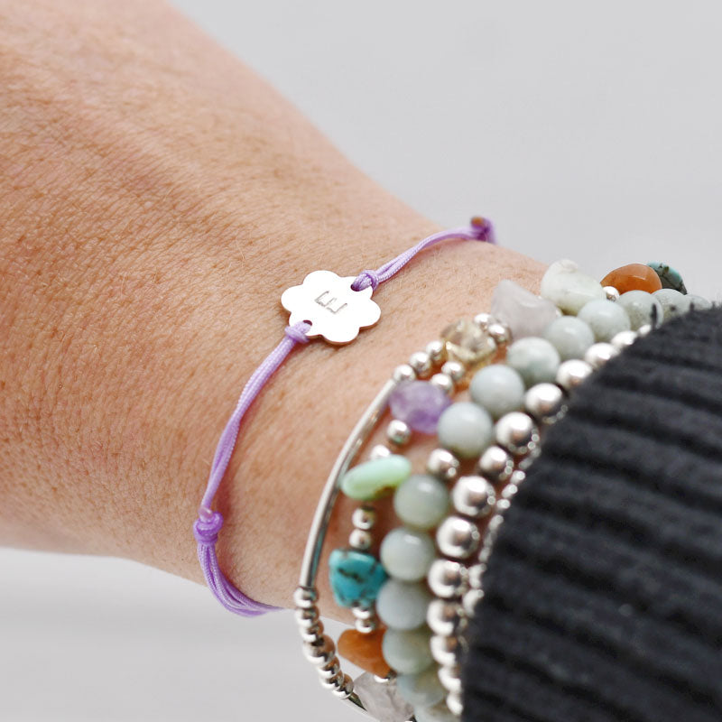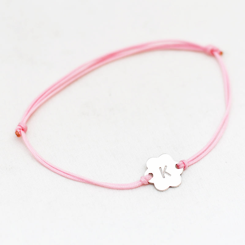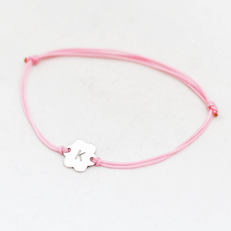 Zilver & Zoet armbandje van een nylon koord met een 925 sterling zilveren bloem.