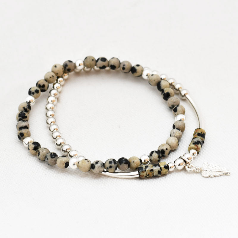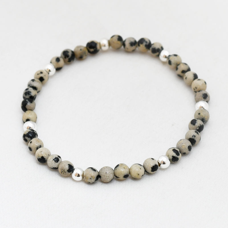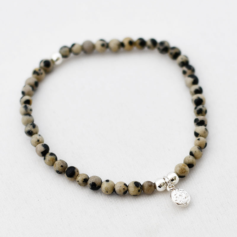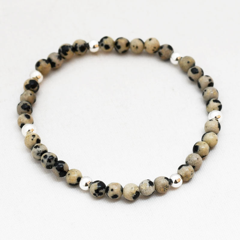 Zilver & Zoet armbandje van edelsteen dalmatiër jaspis (4 mm) met een 925 sterling zilver bedeltje.