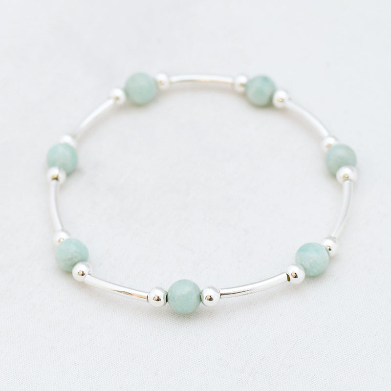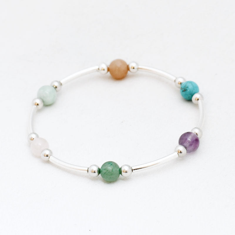 Zilver & Zoet armbandje van 925 sterling zilveren buis kralen en edelsteen kralen.