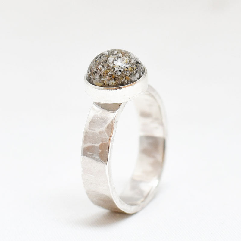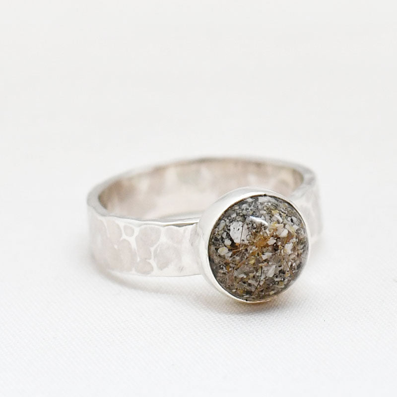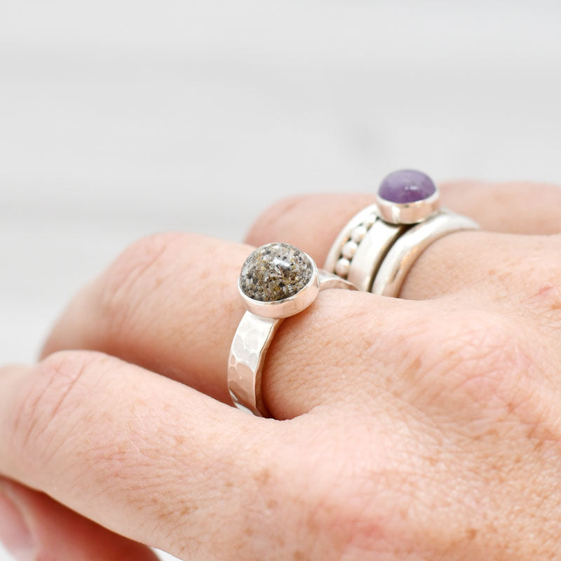 Zilver & Zoet sterling gehamerde ring met as steentje.