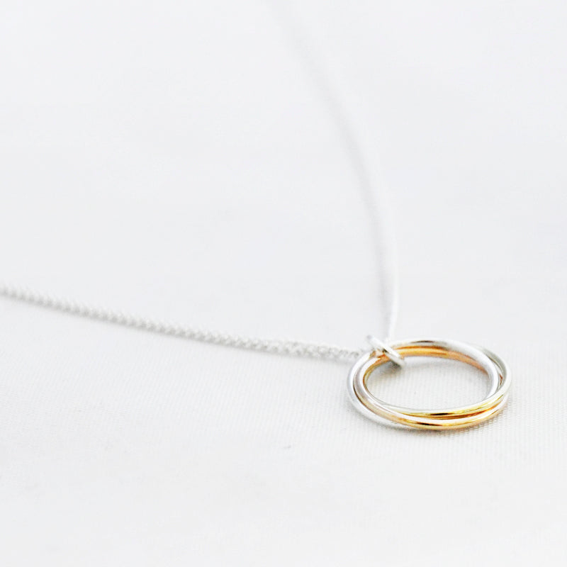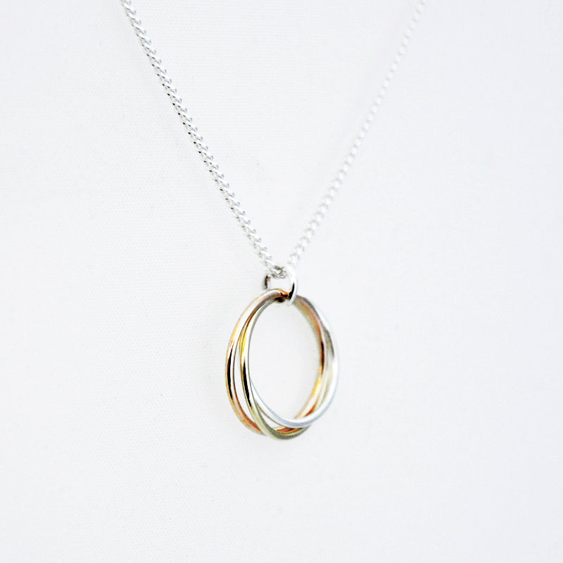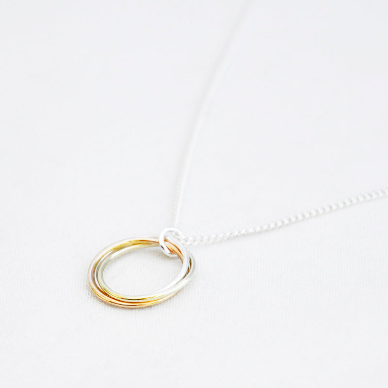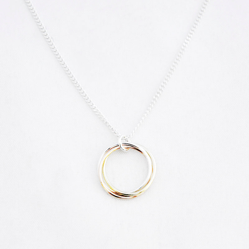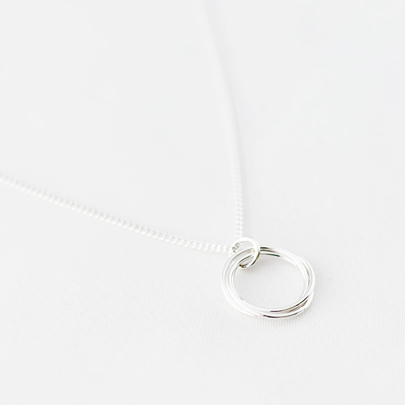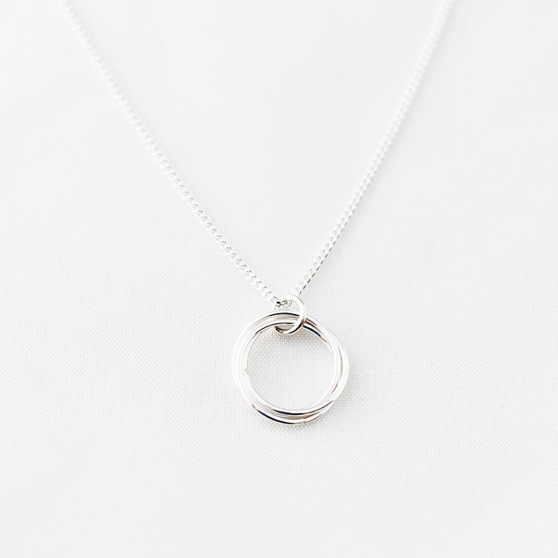 Zilver & Zoet ketting van sterling 925 zilver met een bedel van drie cirkels in elkaar "trinity".