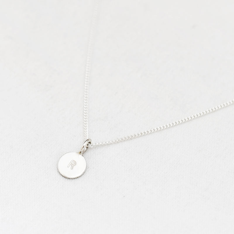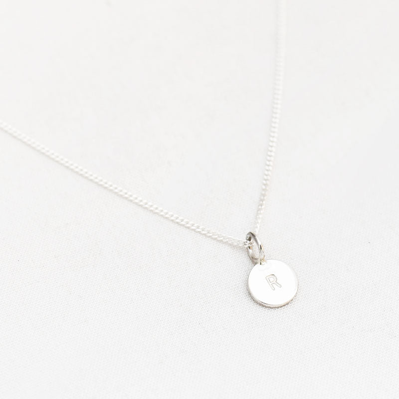 Zilver & Zoet ketting van 925 sterling zilver met een klein rond letter bedeltje.