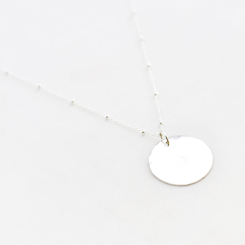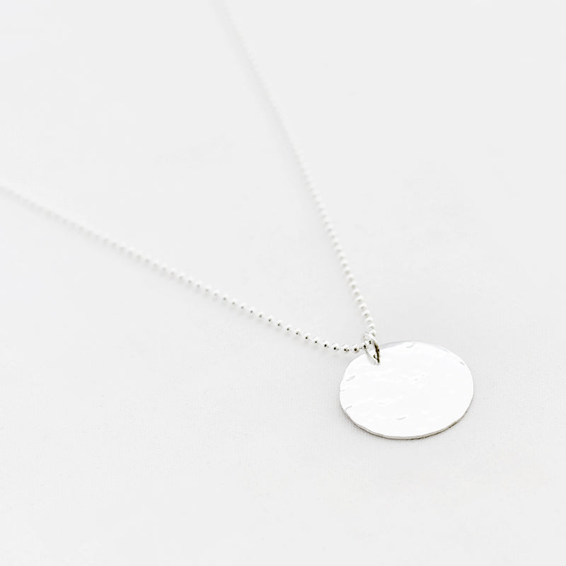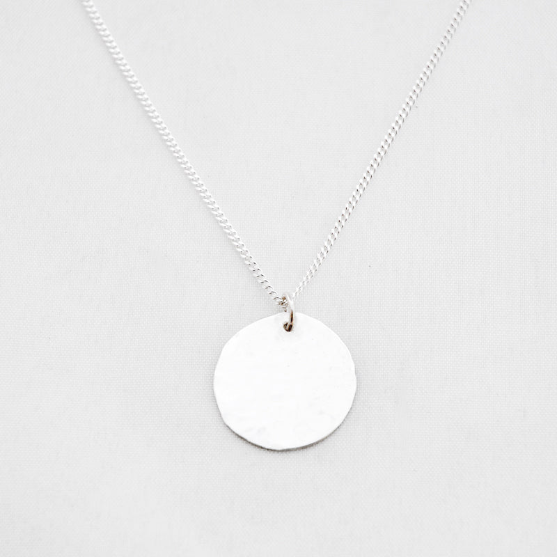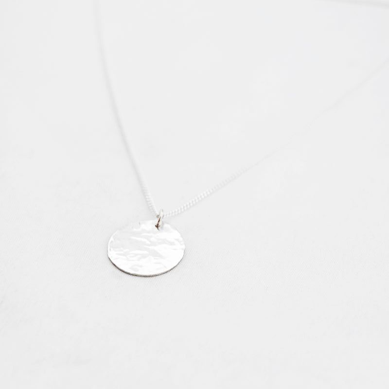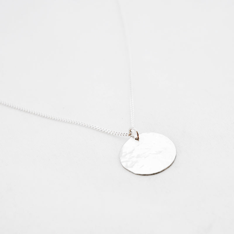 Zilver & Zoet ketting van sterling 925 zilver met een gehamerde munt bedel.