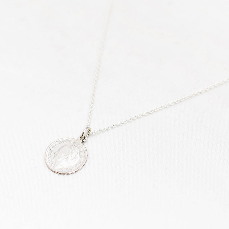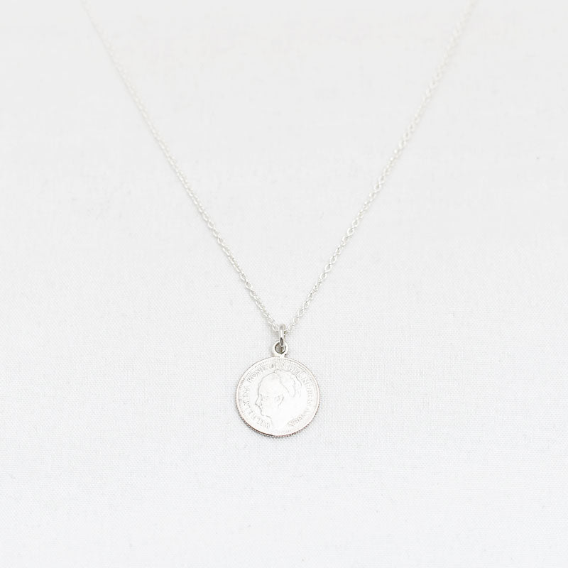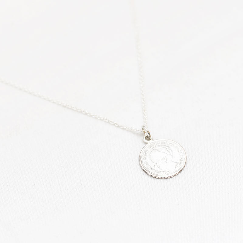 Zilver & Zoet ketting van 925 sterling zilver met het originele Nederlandse Wilhelmina zilveren dubbeltje.