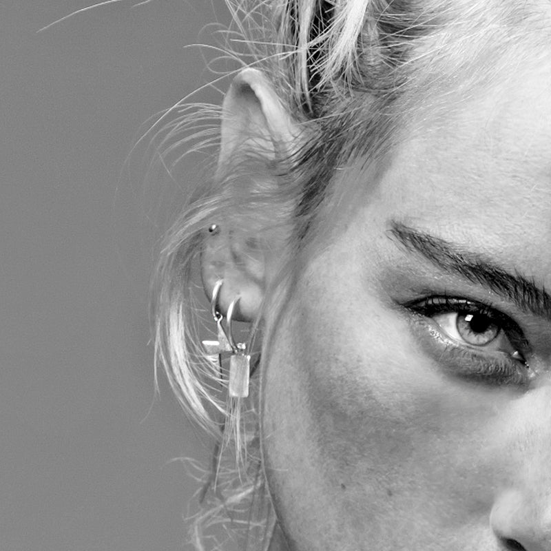 • Op de lifestyle foto de creolen 13 mm (met bedel vierkant).