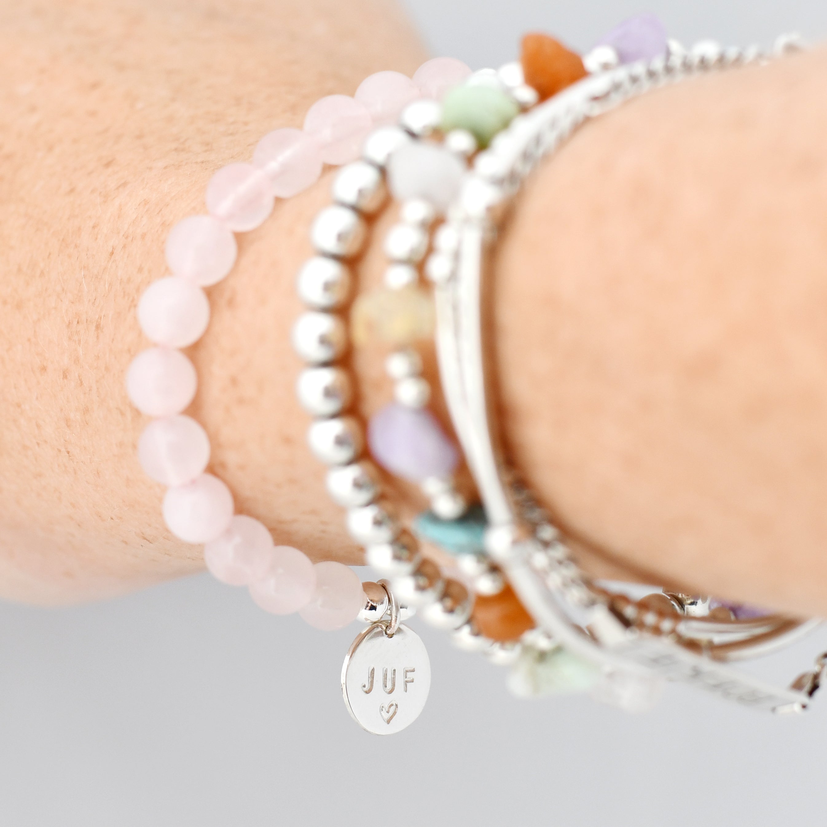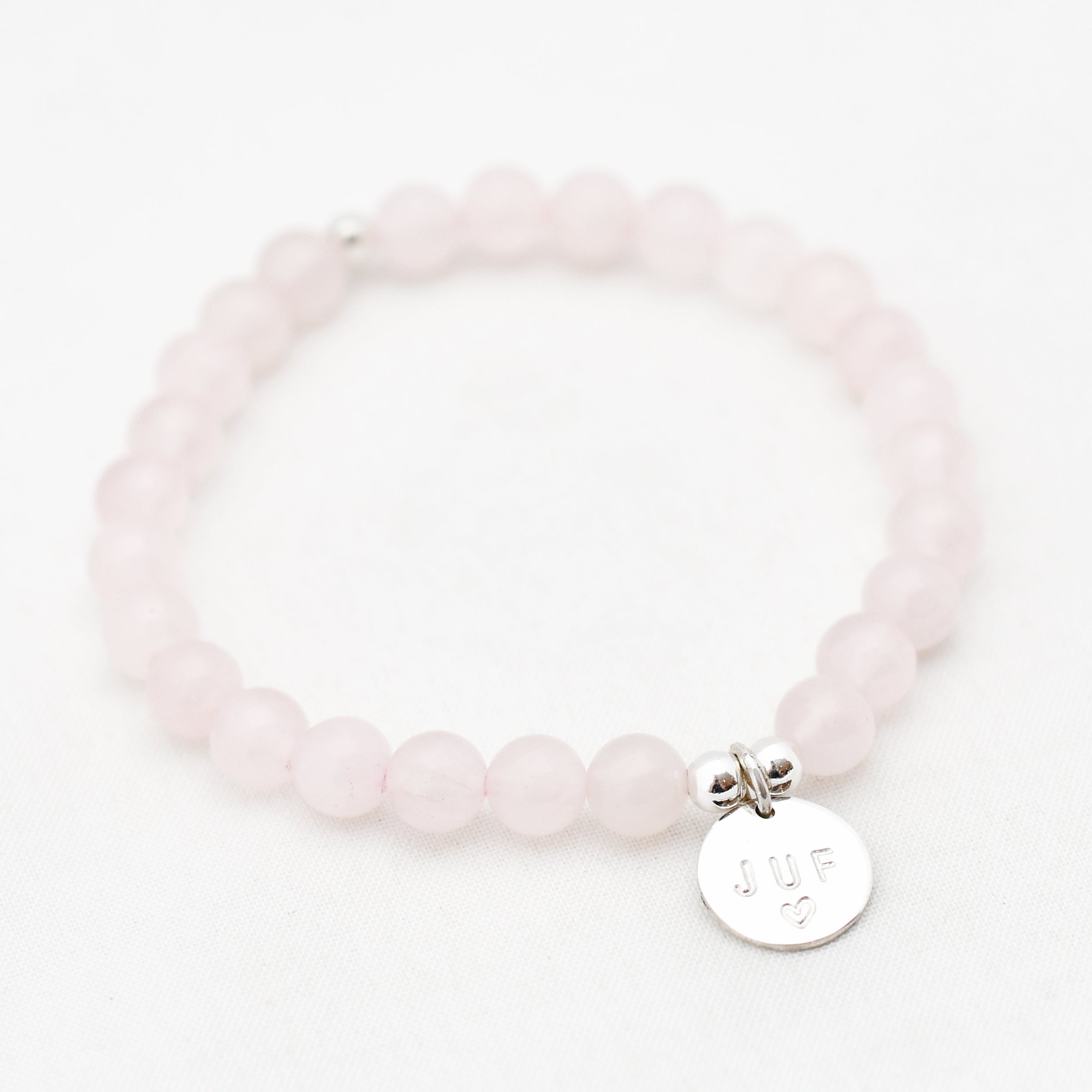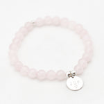 Zilver & Zoet armbandje van edelsteen rozenkwarts (6 mm) met een 925 sterling zilver bedeltje.