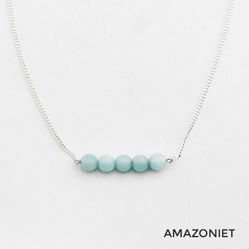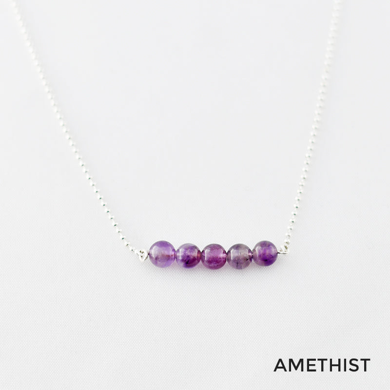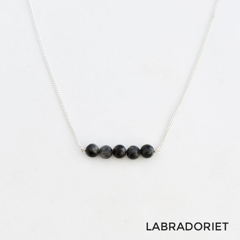 Zilver & Zoet ketting van sterling 925 zilver met een staafje van 5 edelsteen kralen.