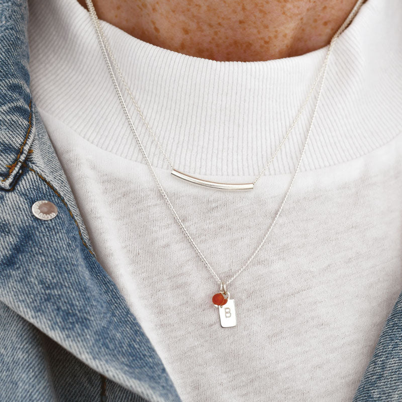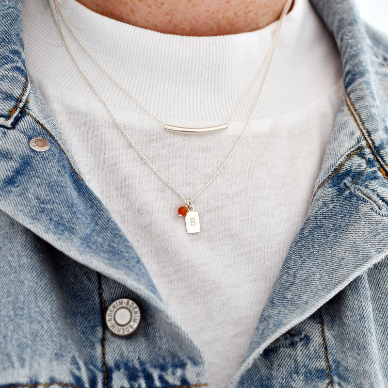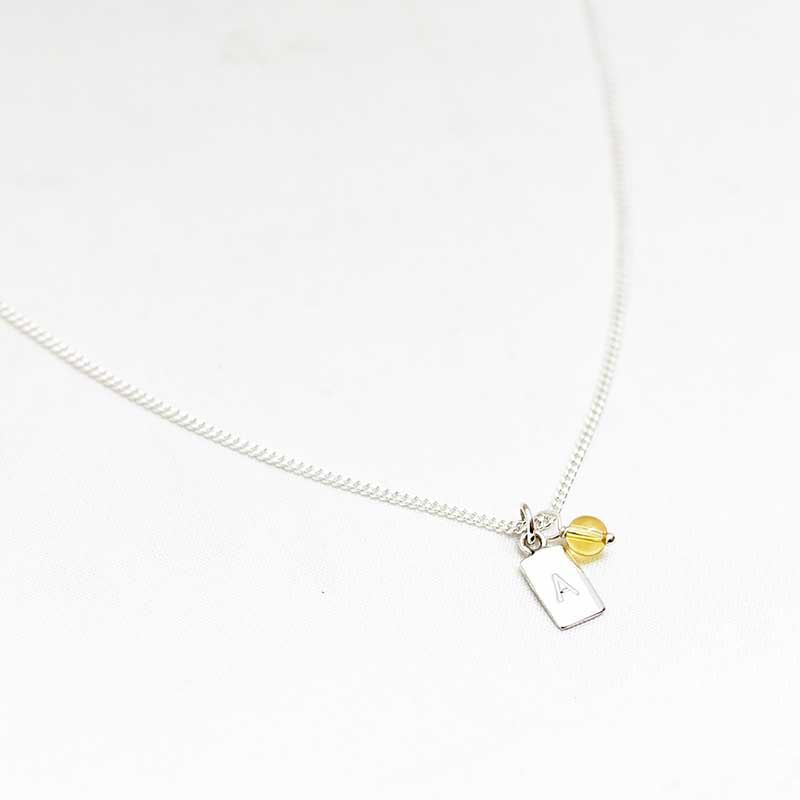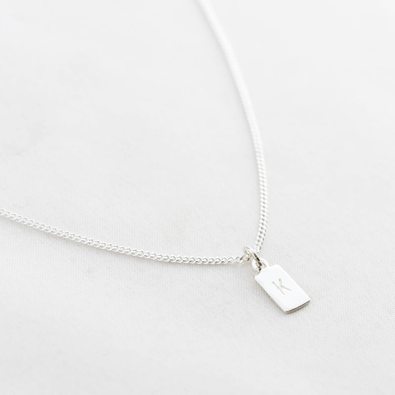 Zilver & Zoet ketting van 925 sterling zilver met een rechthoekig letter bedeltje.