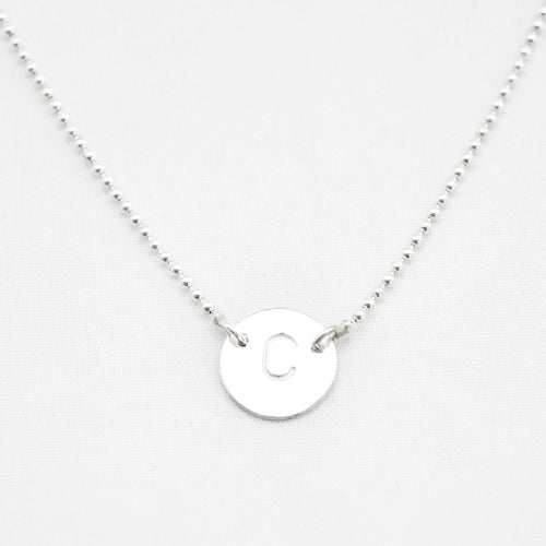 Zilver & Zoet ketting van sterling 925 zilver met een rondje met daarin een letter gestanst.