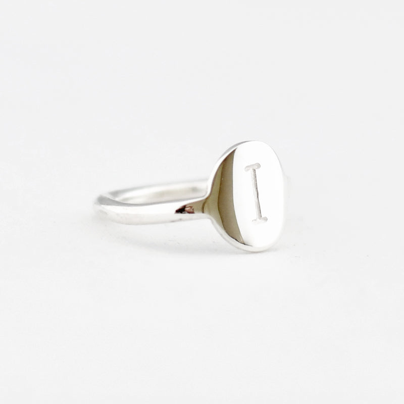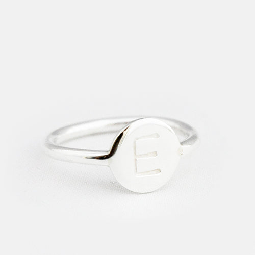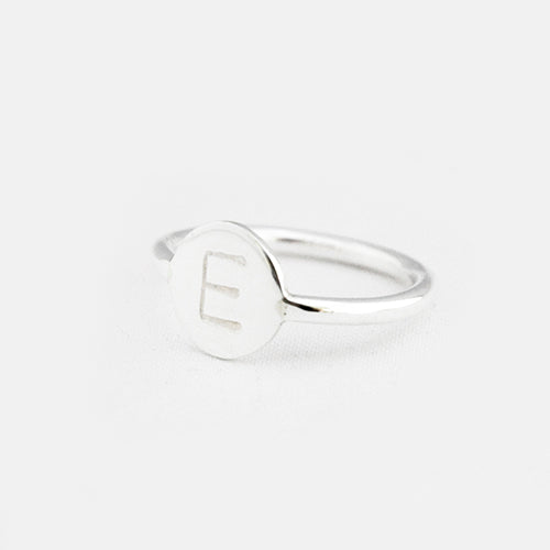 Zilver & Zoet sterling zilveren 925 ring met een rondje met een letter gestanst.