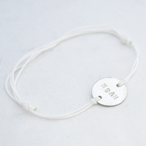 Zilver & Zoet armbandje van een nylon koord met een 925 sterling zilveren rondje.