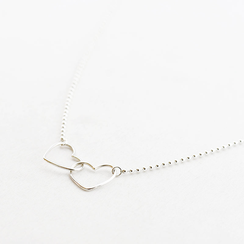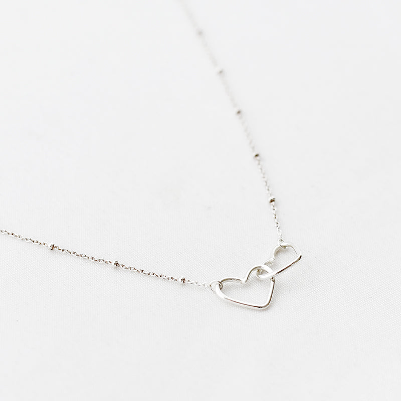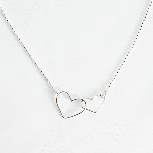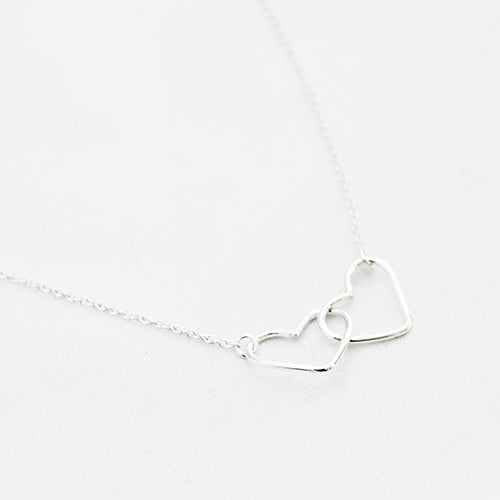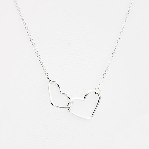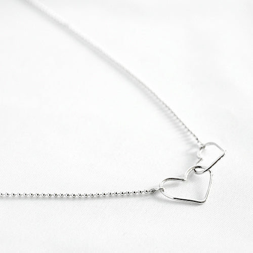 Zilver & Zoet ketting van sterling 925 zilver met twee open hartjes in elkaar.