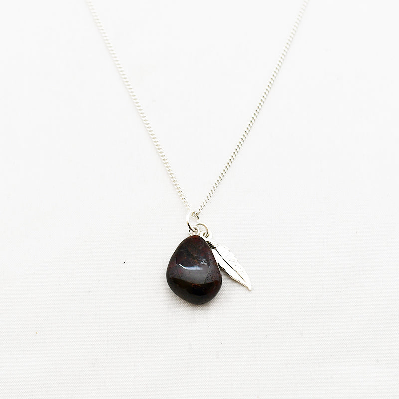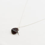Zilver & Zoet ketting van sterling 925 zilver met een granaat edelsteen bedel en een zilver veer bedeltje.