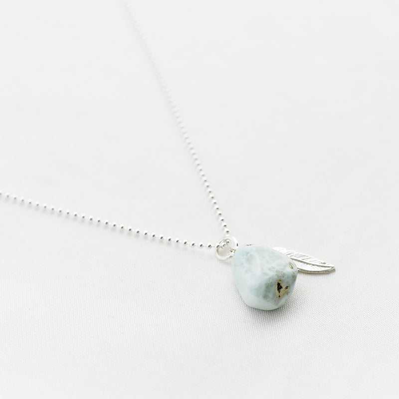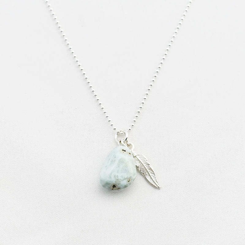Zilver & Zoet ketting van sterling 925 zilver met een witte Larimar edelsteen bedel en een zilver veer bedeltje.