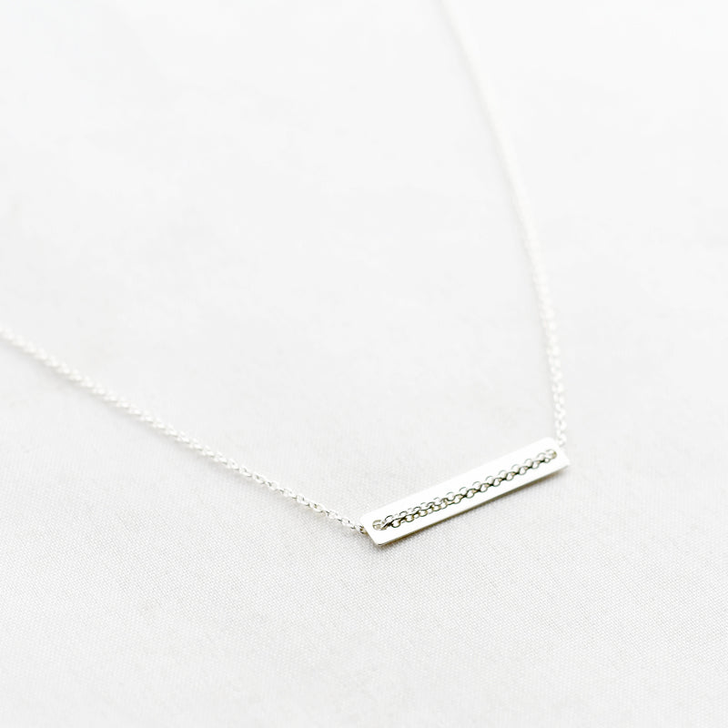 Zilver & Zoet fijne ketting van sterling 925 zilver met een plaatje door twee gaatjes.