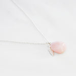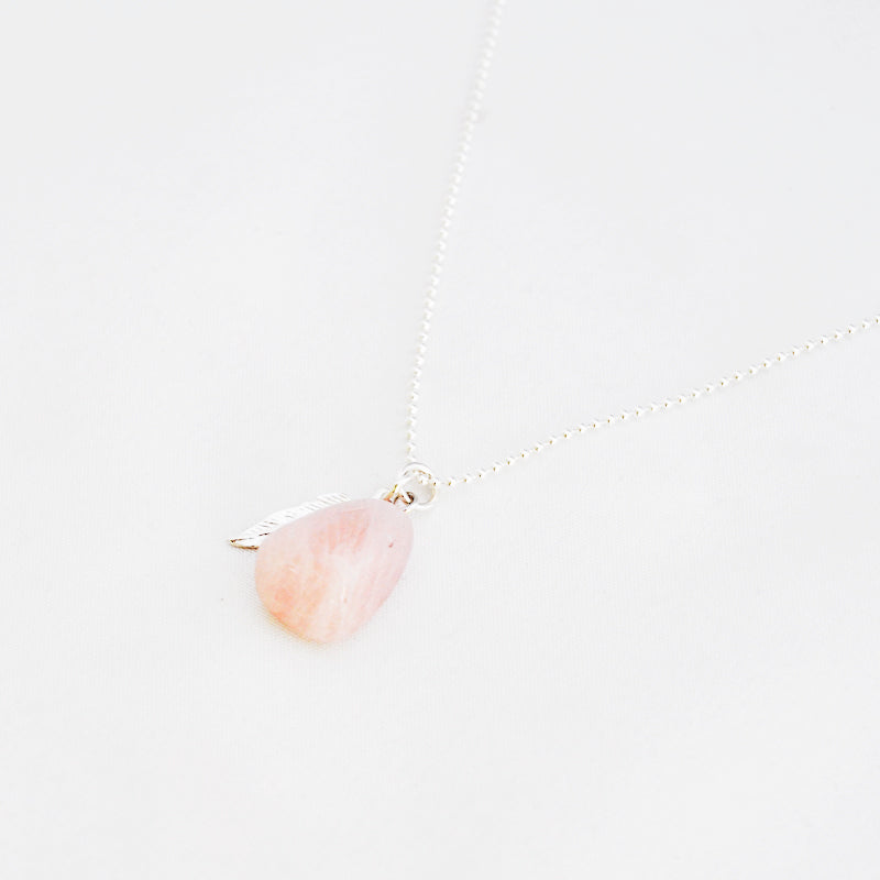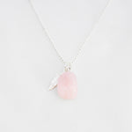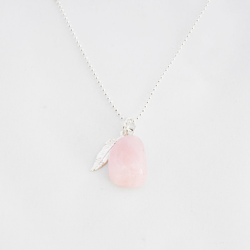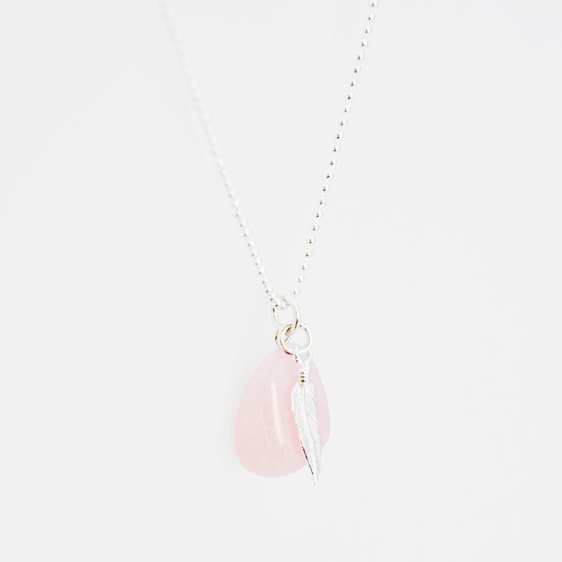 Zilver & Zoet ketting van sterling 925 zilver met een Rozenkwarts edelsteen bedel met een zilver veer bedeltje.