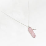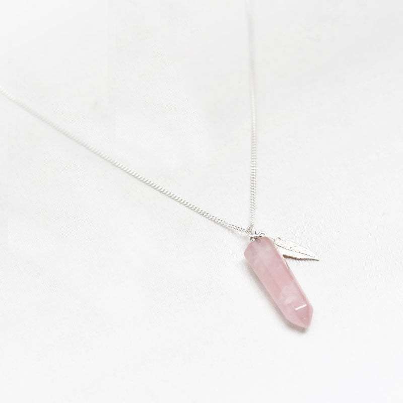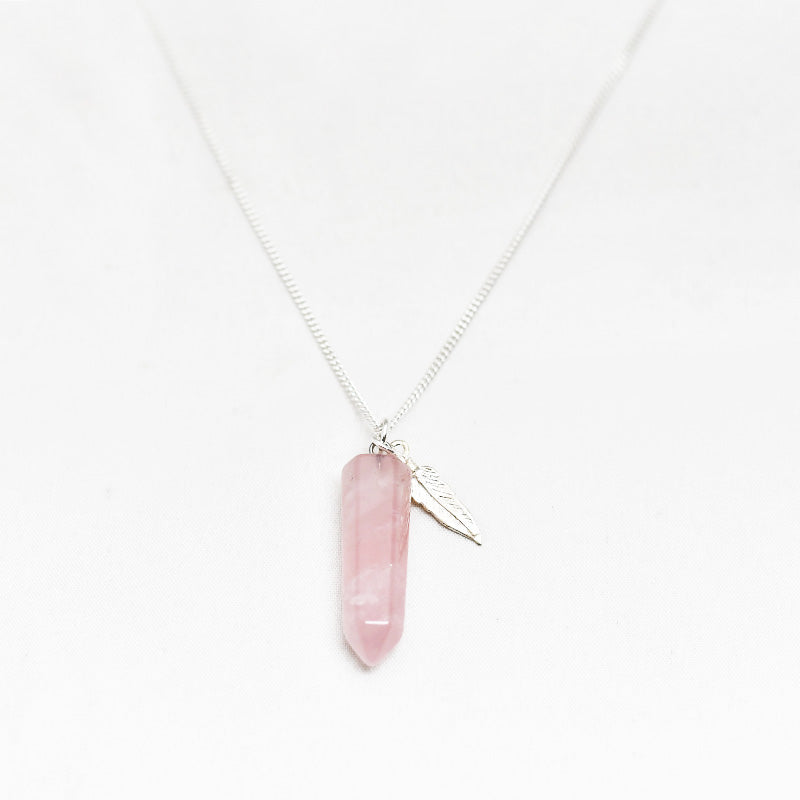 Zilver & Zoet ketting van sterling 925 zilver met een rozenkwarts edelsteen punt bedel met een zilver veer bedeltje.