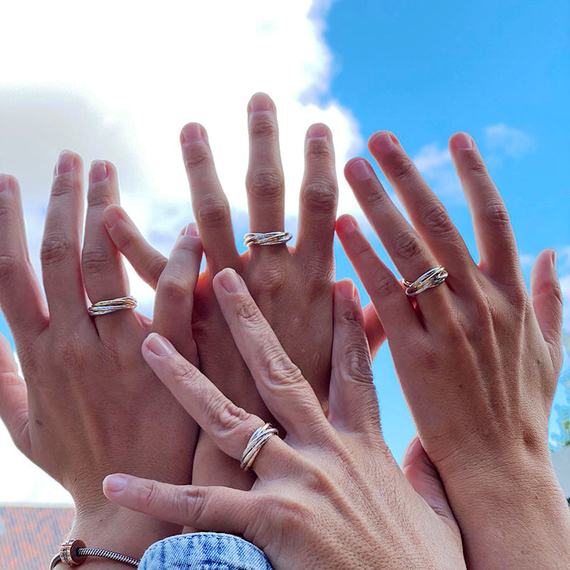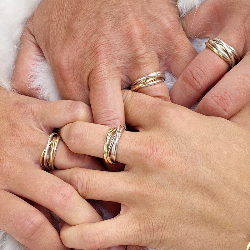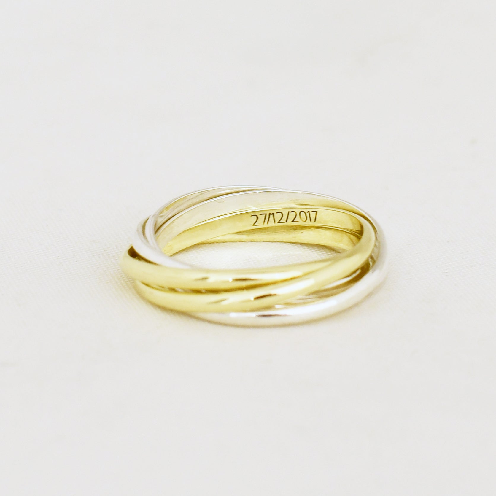 Vijf ringen in elkaar verbonden. Ook wel russische trouwring genoemd. Deze ring staat voor een vijf-eenheid.