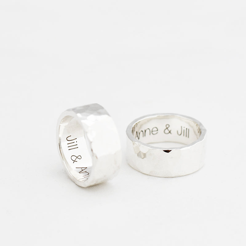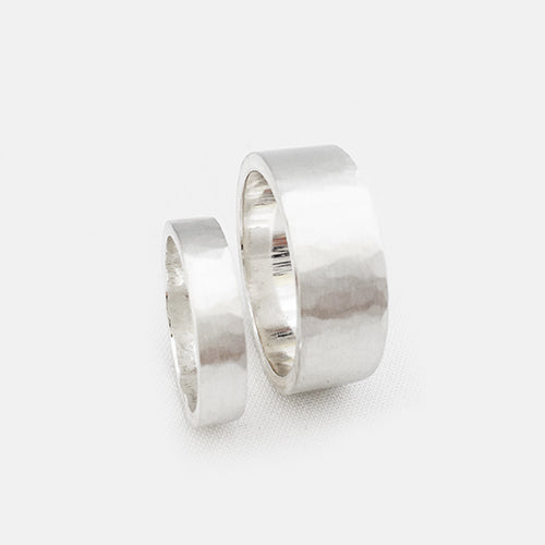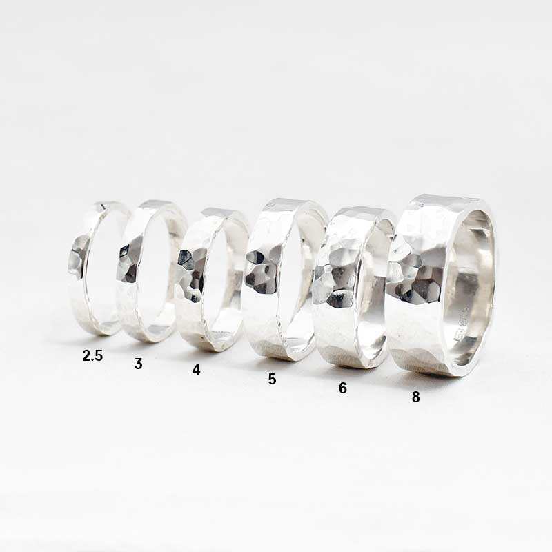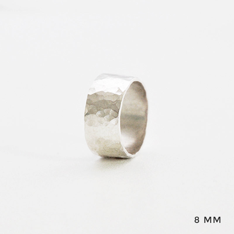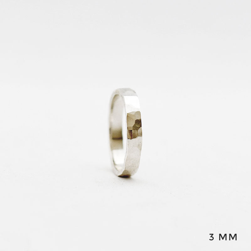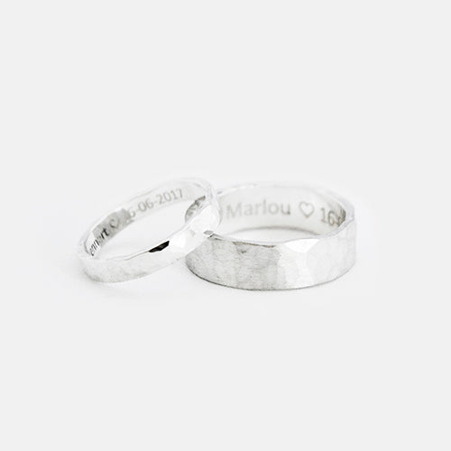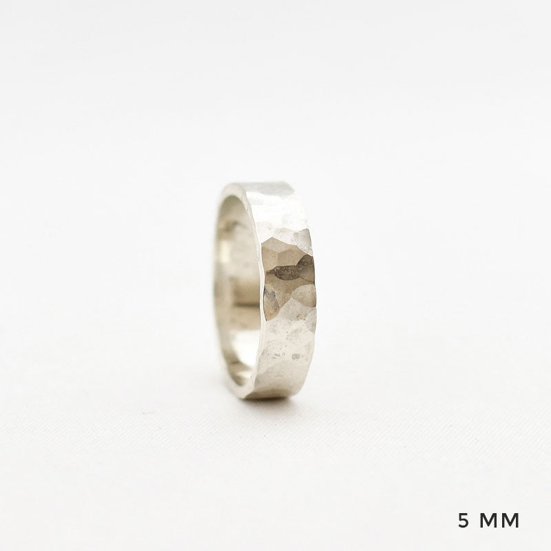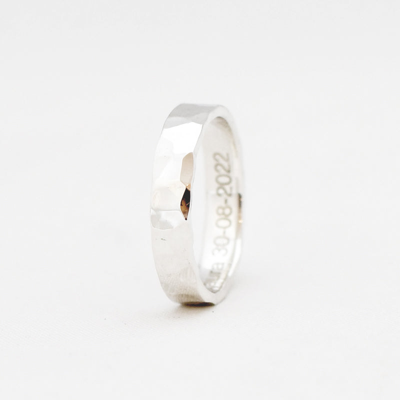 • Ring met gehamerd motief, mogelijk in verschillende breedtes.