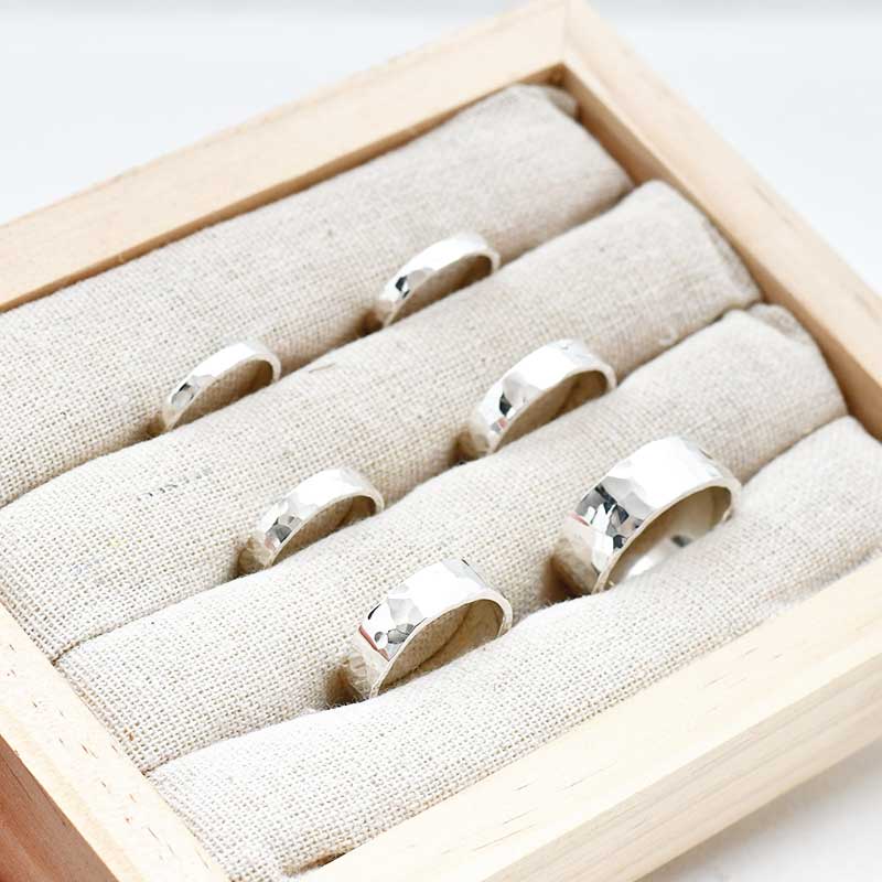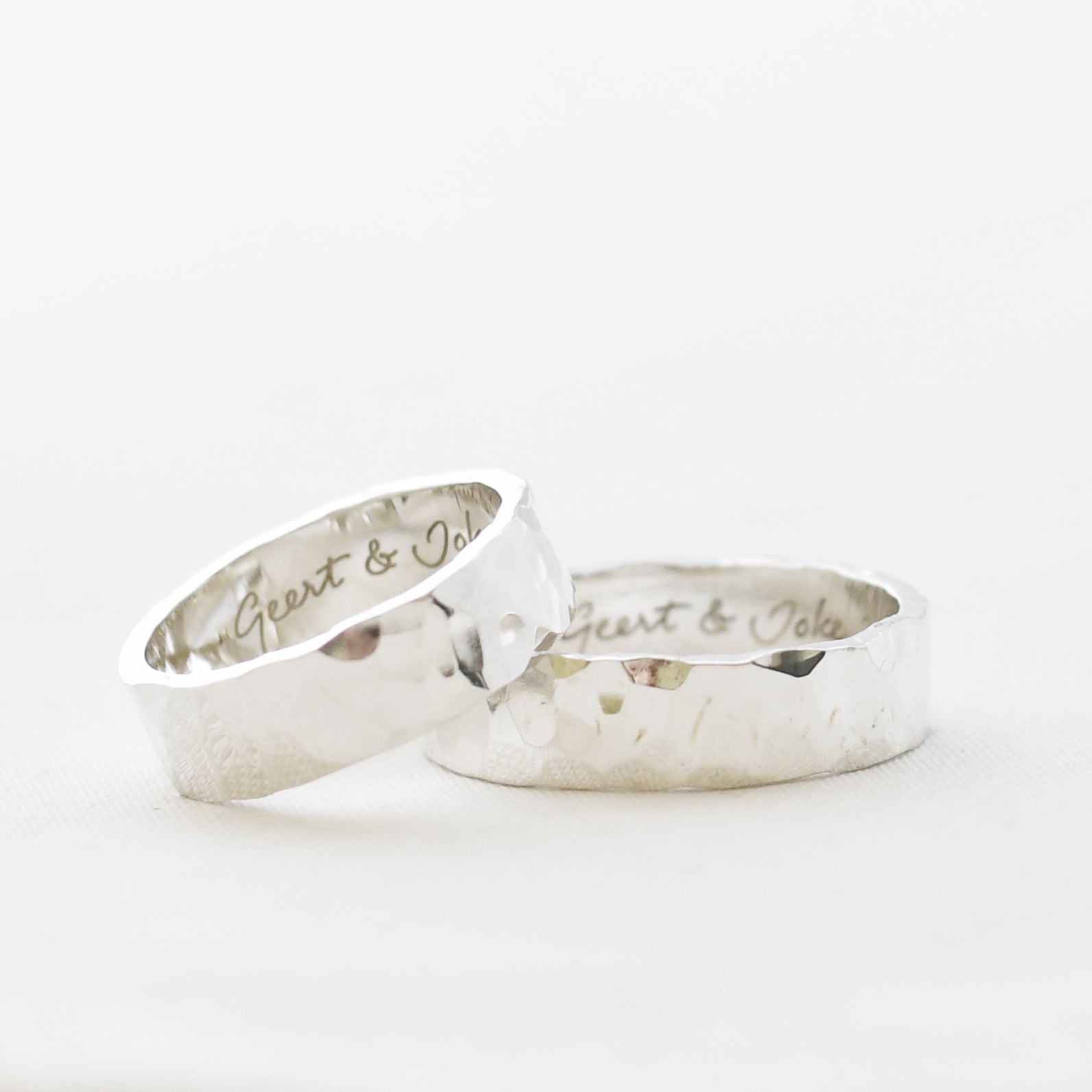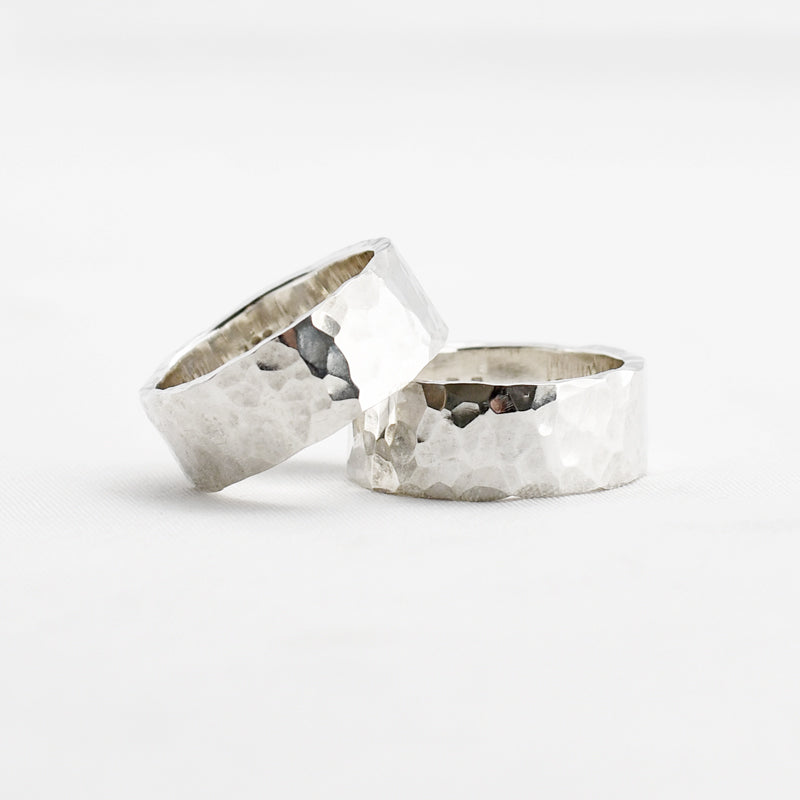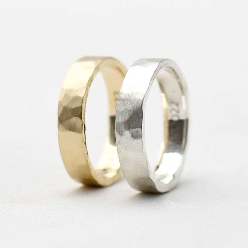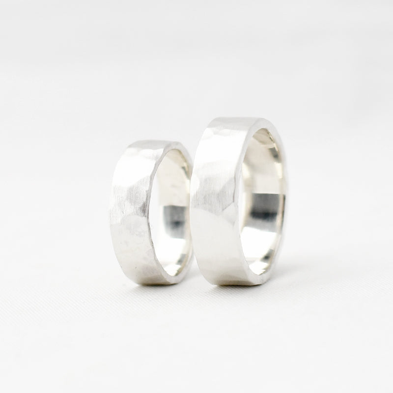 • Ring met gehamerd motief, mogelijk in verschillende breedtes.